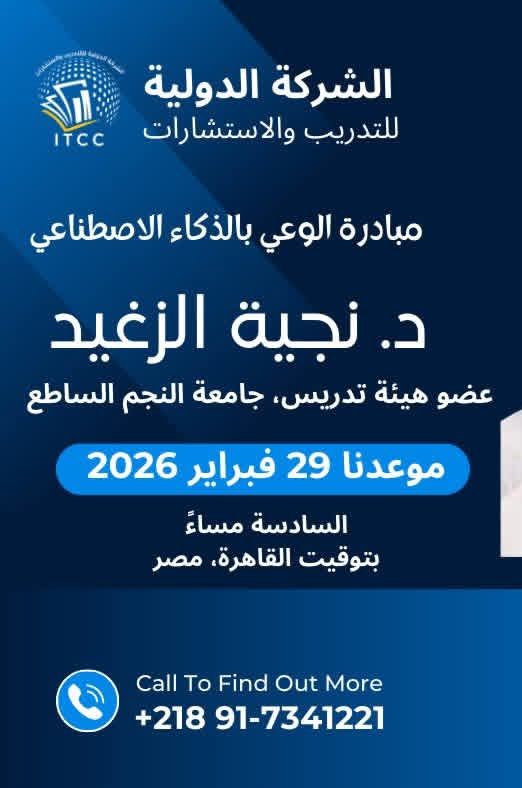 مبادرة الوعي بالذكاء الاصطناعي نبارك للأستاذة نجية الزغيد، عضو هيئة ال… اقرأ المزيدمبادرة الوعي بالذكاء الاصطناعيمكتب الاعلام15 أبريل، 2026