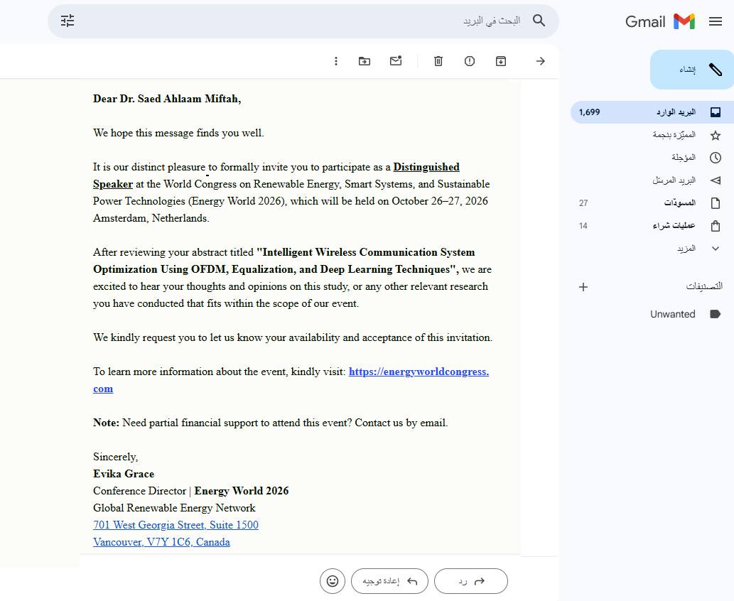 تتقدم جامعة النجم الساطع بخالص التهنئة والمباركة للأستاذة أحلام مفتاح الجلالي عضو هيئةالتدريس بالقسم هندسةالكهربائية، بمناسبة اختيارها كمتحدثة متميزة (Distinguished Speaker) في المؤتمر العالمي السادس للتقنيات النانوية المتقدمة والمواد النانوية (NanoX 2026) بمدينة أمستردام، هولندا.