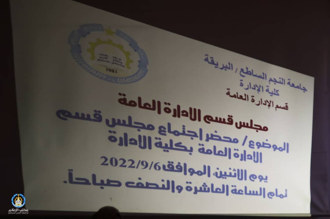 عُقد صباح اليوم الأثنين الموافق للخامس من سبتمبر 2022م إجتماعاً بكلية الإدارة ضم كل من رئيس القسم “أ. نجية الزغيد” و “أ. محمد الشيخي” و”أ.رافع العبيدي”و”أ. صباح الزوي. “و” أ. عازة المنصوري “.