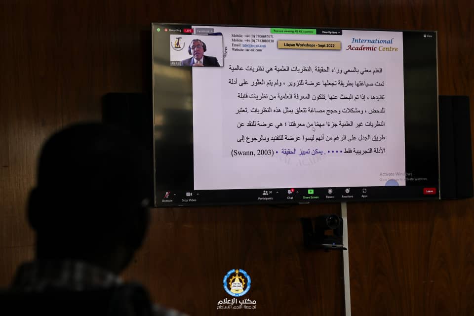 إنطلقت صباح اليوم الأحد الموافق للخامس والعشرون من سبتمبر 2022م الدورة التي قدمها “مركز IAC” بدولة اجلترا والتي استهدفت اعضاء هيئة التدريس والموظفين بالجامعة بإشراف “أ. كمال الزغيد وكانت الورشة الاولى بعنوان (مناهج البحث العلمي في العلوم الاجتماعية) والتي قدمها” د. علي محمد علي ” حيث تناولت فكرة عامة حول مناهج البحث والتى تعتبر ركيزة اساسية عند اجراء البحوث، كما تقدم بعض المعلومات حول كيفية اختيار المنهجية المناسبة وفقاً لنوع البحث بالإضافة الى طرق جمع البيانات وتحليلها.