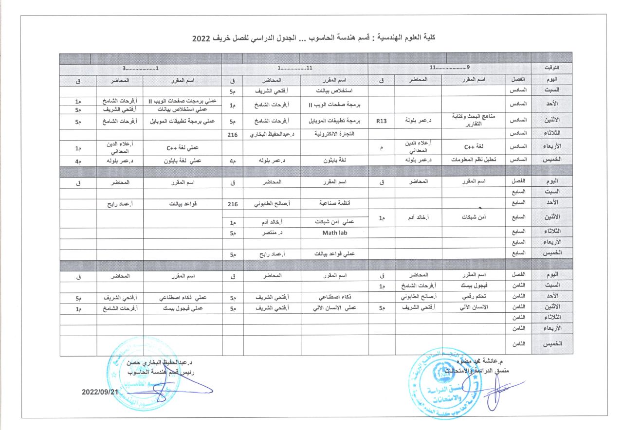 جدول المحاضرات لقسم هندسة الحاسوب (خريف 2022)مكتب الاعلام28 سبتمبر، 2022الاخبار والإعلانات, الصفحة الرئيسية, النشاطات المقالة السابقة زيارة مندوب الإنجليزي للشركة الالمانية الخاصة بالمعامل المقالة التالية جدول المحاضرات لقسم الهندسة الكيميائية (خريف 2022)