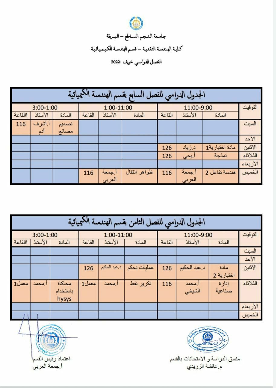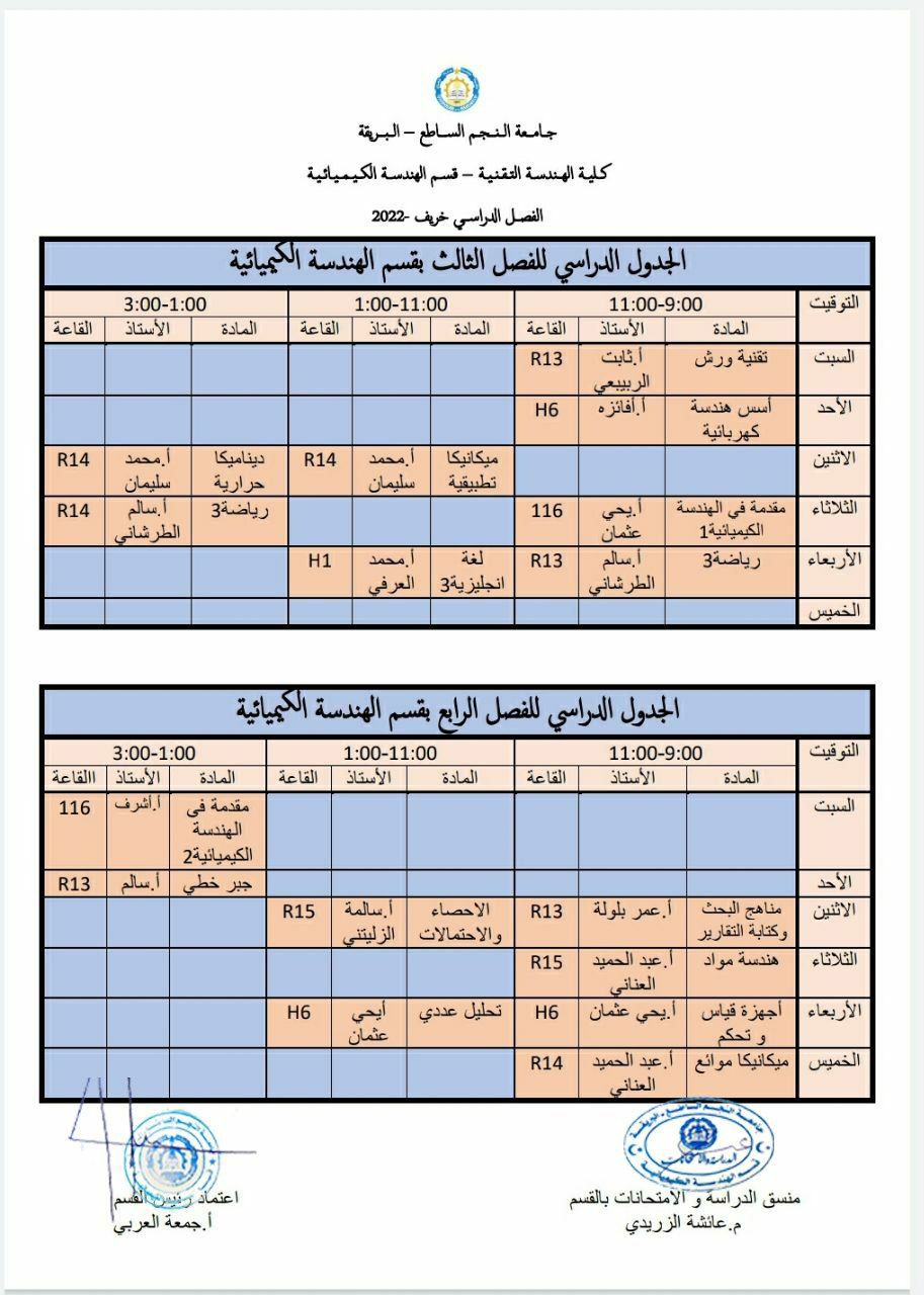 جدول المحاضرات لقسم الهندسة الكيميائية (خريف 2022)مكتب الاعلام28 سبتمبر، 2022الاخبار والإعلانات, الصفحة الرئيسية المقالة السابقة جدول المحاضرات لقسم هندسة الحاسوب (خريف 2022) المقالة التالية إختتام الدورة التدربية في مجال صيانة محركات و هياكل الطائرات لطلبة قسم هندسة ميكانيكا طيران