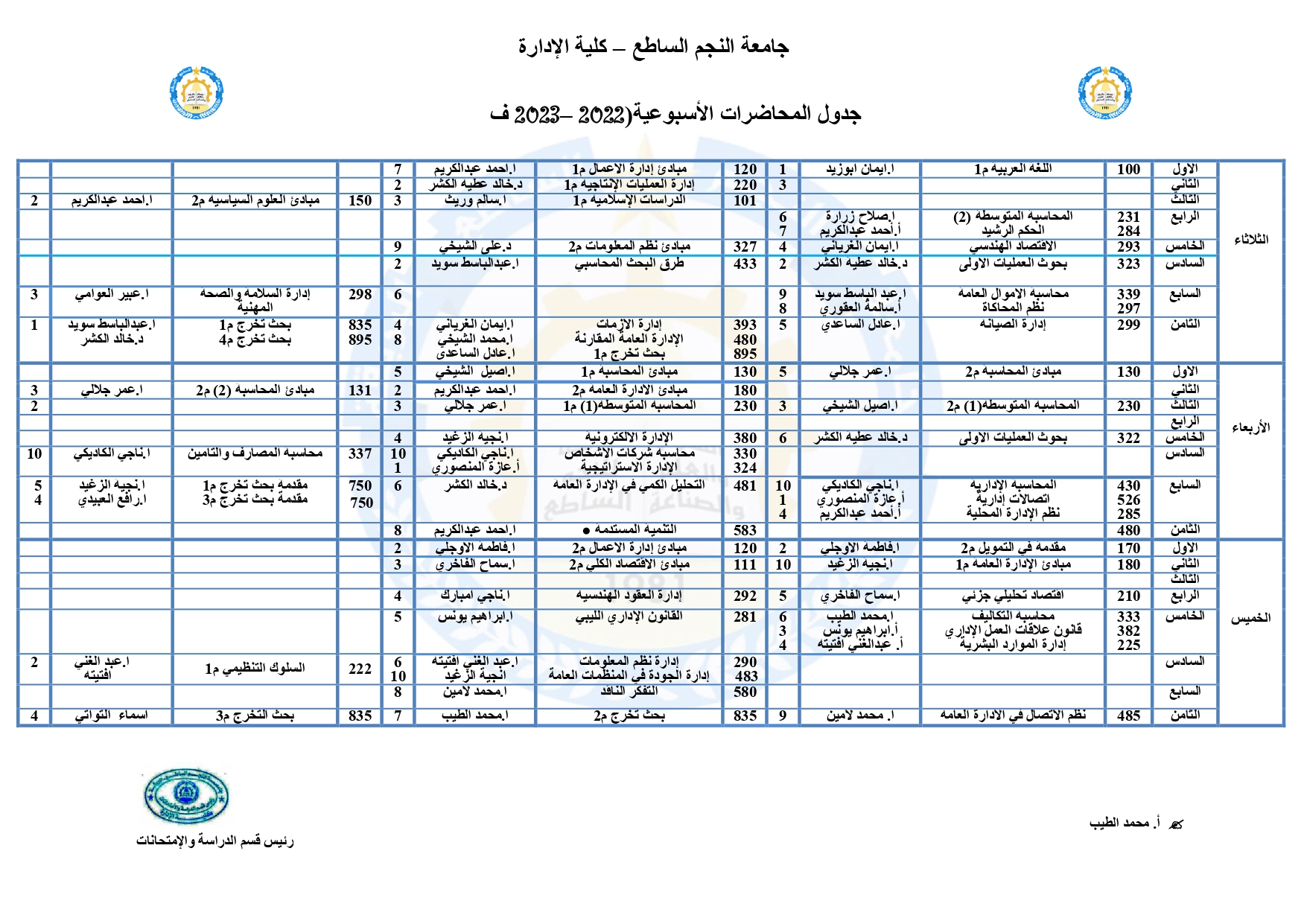 الجدول الدراسي لكلية الإدارة (خريف 2022)مكتب الاعلام28 سبتمبر، 2022الاخبار والإعلانات, الصفحة الرئيسية المقالة السابقة جدول المحاضرات لقسم الهندسة الكهربائية والالكترونية (خريف 2022) المقالة التالية جدول المحاضرات لقسم الهندسة الميكانيكية (خريف 2022)