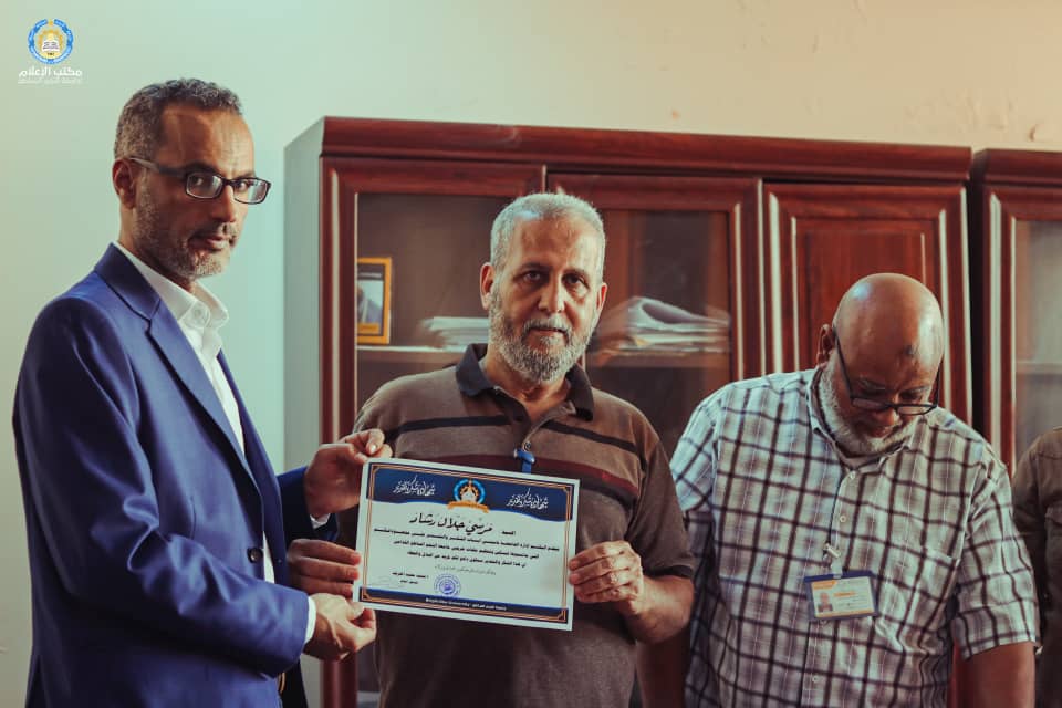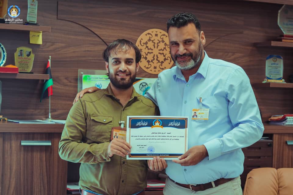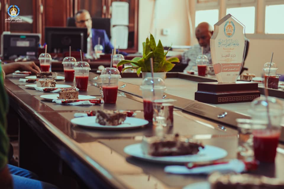 بحضور إدارة الجامعة والمُتمثلة في الكاتب العام (أ.فرج الوافي) ومدير مكتب التخطيط والمتابعة (أ.الزروق صالح عبد العالي) رفقة مدير مكتب رئيس الجامعة ومدير مكتب الحرس الجامعي، وبحضور المسجل العام للجامعة (أ.محمد المقريف)، قامت إدارة الجامعة بتكريم كآفة موظفي إدارة المسجل العام على مجهوداتهم في إعادة ارشفة اكثر من 5000 ملف للمعهد العالي طبرق سابقاً وقدامى جامعة النجم الساطع في فترة وجيزة جداً، وفي عمل لم يسبق له مثيل في كافة الجامعات الليبية.