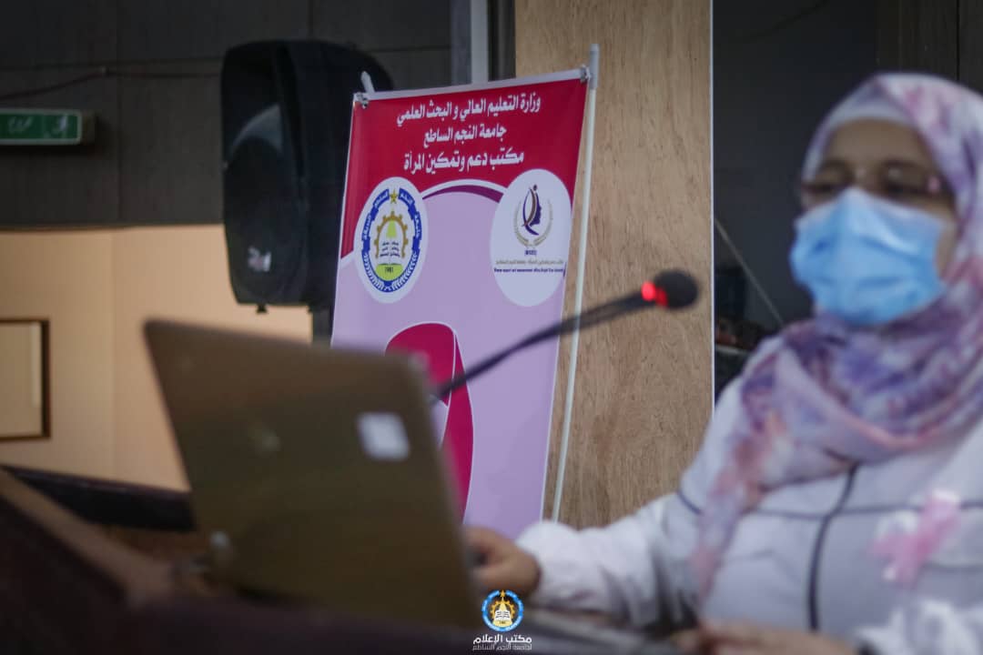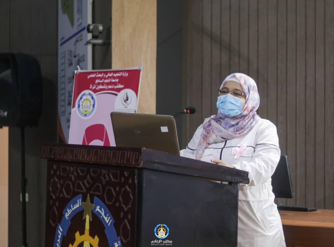 أحتضن مدرج 2 مارس اليوم الأحد الموافق 30 أكتوبر 2022م الحملة التوعوية لمرض سرطان الثدي بإشراف مدير مكتب دعم وتمكين المراة “أ. سالمة العقوري” تحت شعار ( لانك الحياة.. أفحصي ) بحضور عدد كبير من السيدات اعضاء هيئة التدريس والموظفات وطالبات بالجامعة