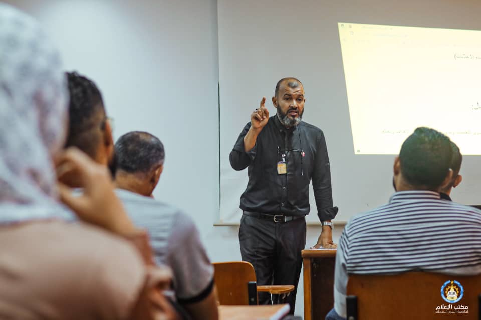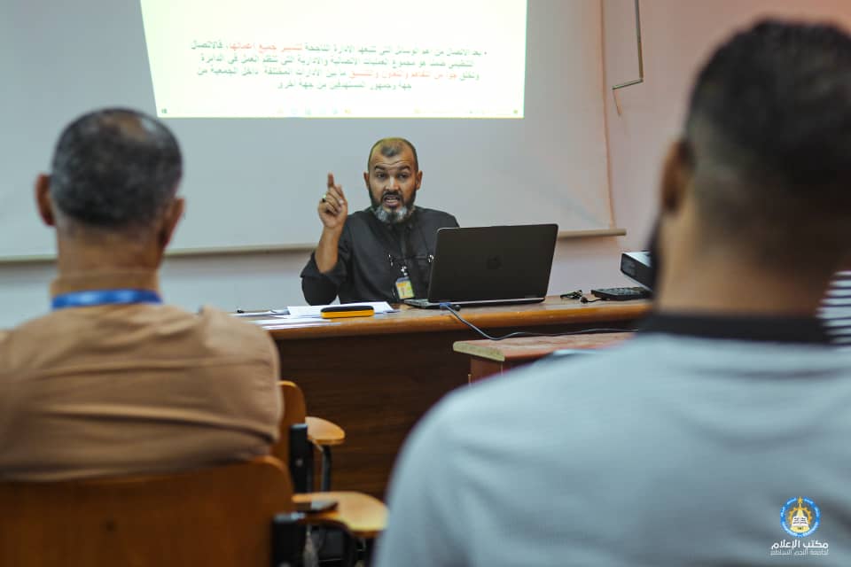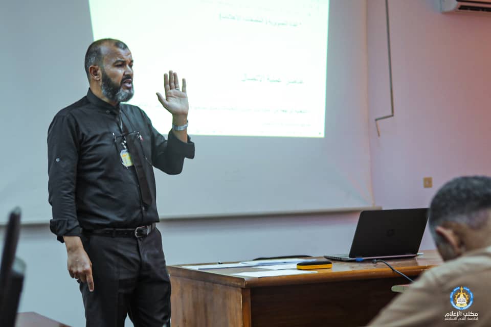 نظمت إدارة الدراسات العليا و التدريب اليوم وبتاريخ 06-11-2022 ورشة عمل تحت مسمى الاتصالات الإدارية و أهميتها والتي خصت بها تطوير موظفي الجامعة تحت اشراف المحاضر أ. محمد الشيخي حيث تم الافتتاح من قبل مدير إدارة الدراسات العليا و التدريب السيد امبارك ابوحشيشة والذي أوضح أهمية الورشة في زيادة معارف الموظفين في مجال الإدارة و الاتصال فيما أضاف السيد ا محمد الشيخي الي ان أهمية تطوير الموظف لنفسة وتطوير مهاراته في التخطيط و التنظيم و غيرها.و لقد احتوت الورشة علي تعريف الاتصال واهمية الرسالة و أطرافها ووضوح الاتصال و معوقات الاتصال الإداري هذا من المتوقع عقد المزيد من الورشه لتحسين أداء موظفي الجامعة .