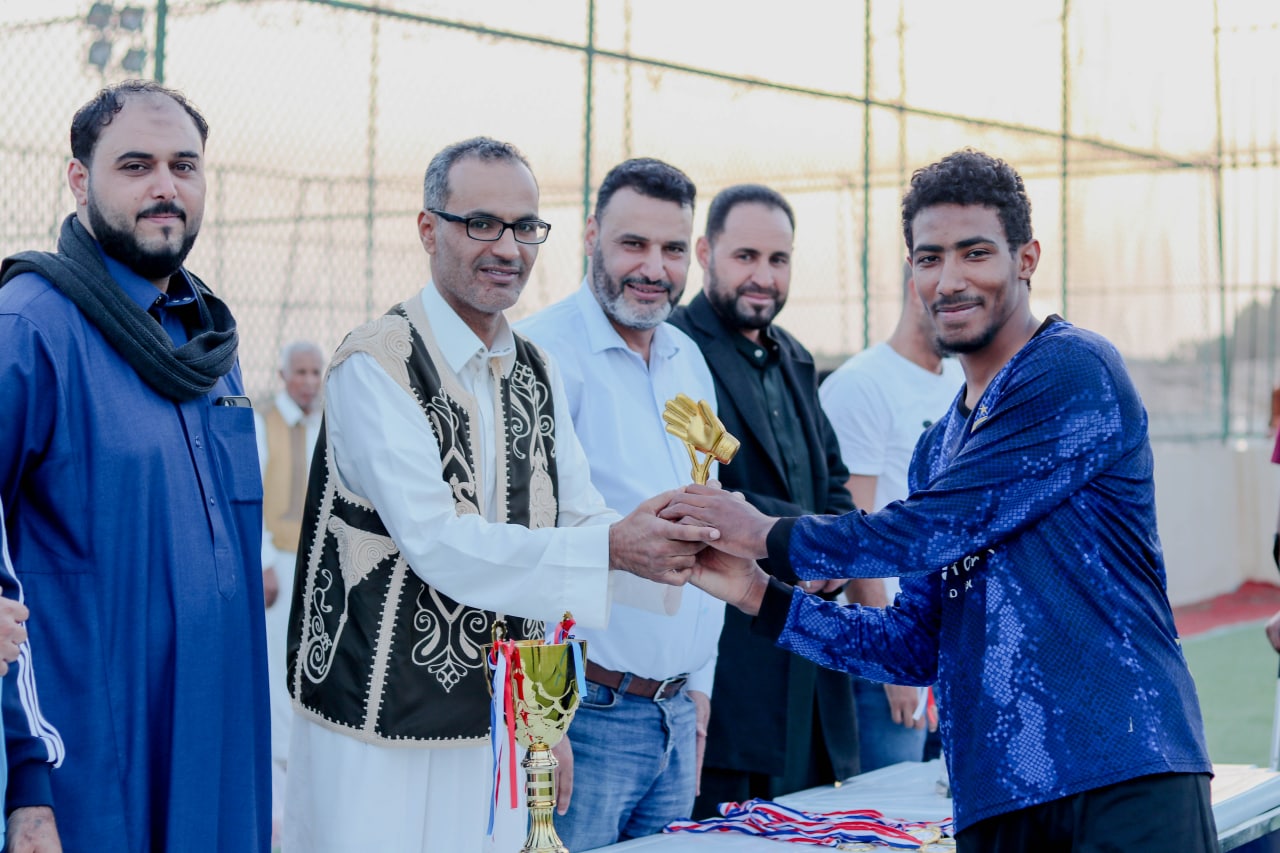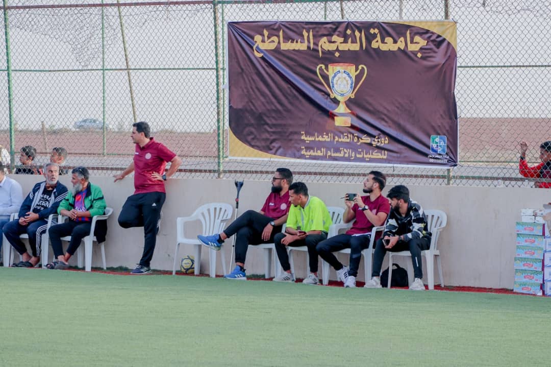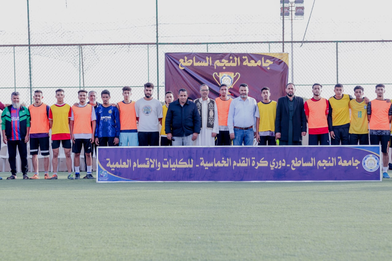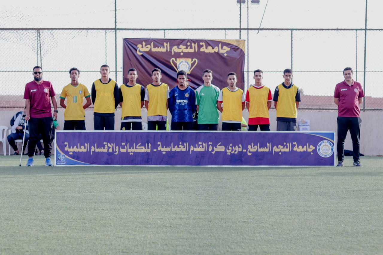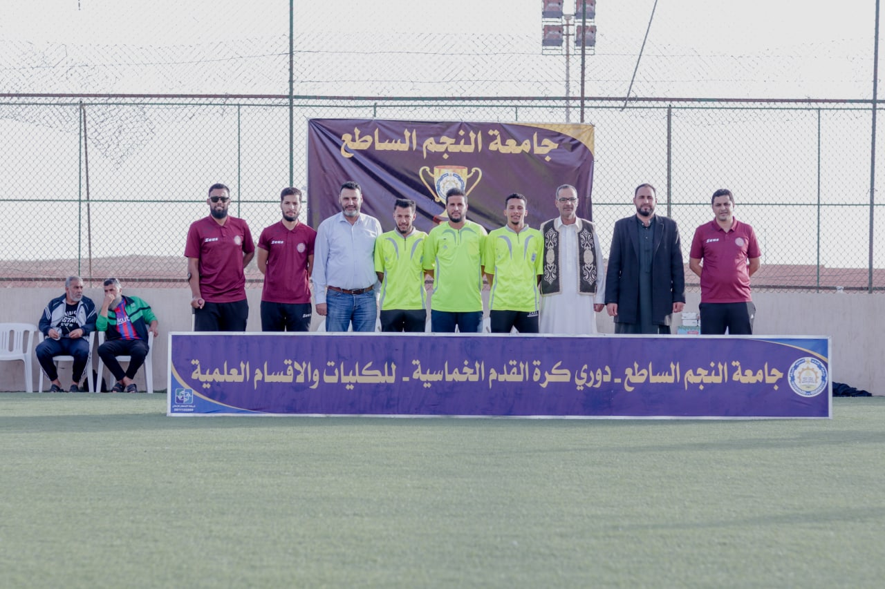 بحضور ” الكاتب العام لجامعة النجم الساطع البريقة ” أ.فرج الوافي و ” مدير مكتب التخطيط والمتابعة بالجامعة ” أ.الزروق صالح عبدالعالي أحتضن ملعب الخماسيات بمجمع المرحوم عطايا حمد عبدالمولى بجامعة النجم الساطع مساء اليوم الجمعة الموافق 18 / 11 / 2022 م المباراة النهائية لدوري كرة القدم الخماسية الخاص بطلبة الكليات والأقسام العلمية والذي أشرفت على تنظيمه إدارة النشاط بالجامعة