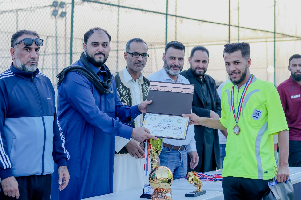 وقد تحصل لاعب فريق كلية الهندسة التقنية ” عام ” عبدالهادي مصباح على جائزة لقب أفضل لاعب ولاعب فريق قسم هندسة السلامة عبدالباسط زيدان على جائزة لقب هداف الدوري بينما تحصل حارس مرمى فريق كلية الهندسة التقنية ” عام ” إبراهيم الجروالي على جائزة لقب أفضل حارس مرمى …