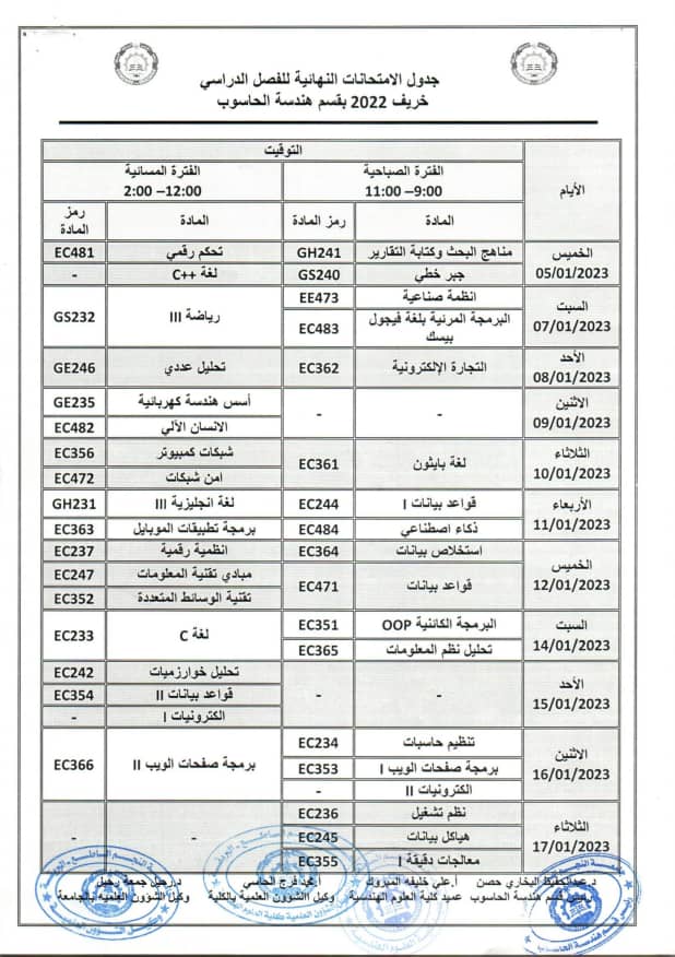جداول الامتحانات النهائية للأقسام العلمية بكلية العلوم الهندسية (خريف 2022)مكتب الاعلام17 ديسمبر، 2022الاخبار والإعلانات, الصفحة الرئيسية المقالة السابقة جداول الامتحانات النهائية للأقسام العلمية بكلية الهندسة التقنية (خريف 2022) المقالة التالية جداول الامتحانات النهائية للأقسام العلمية بكلية الادارة (خريف 2022)