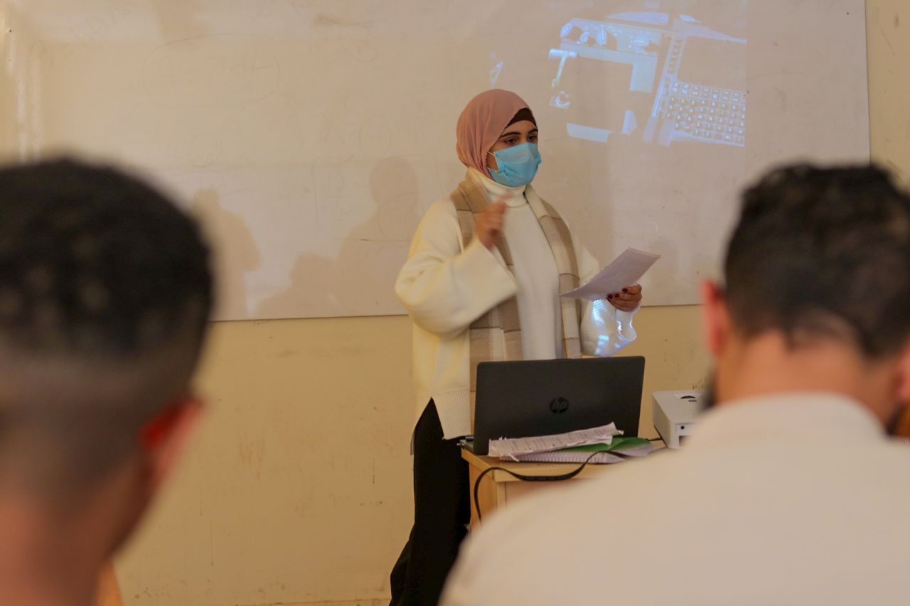 الورشة التي أشرف عليها طلاب الفصل الثامن الخريجين تهدف إلى ربط الدراسة النظرية مع الجوانب العملية المتعلقة بأعمال الصيانة وتندرج ضمن النشاطات والبرامج التي يدوام قسم ميكانيكا الطيران على القيام بها تحت إشراف أ.منتصر على سعيد