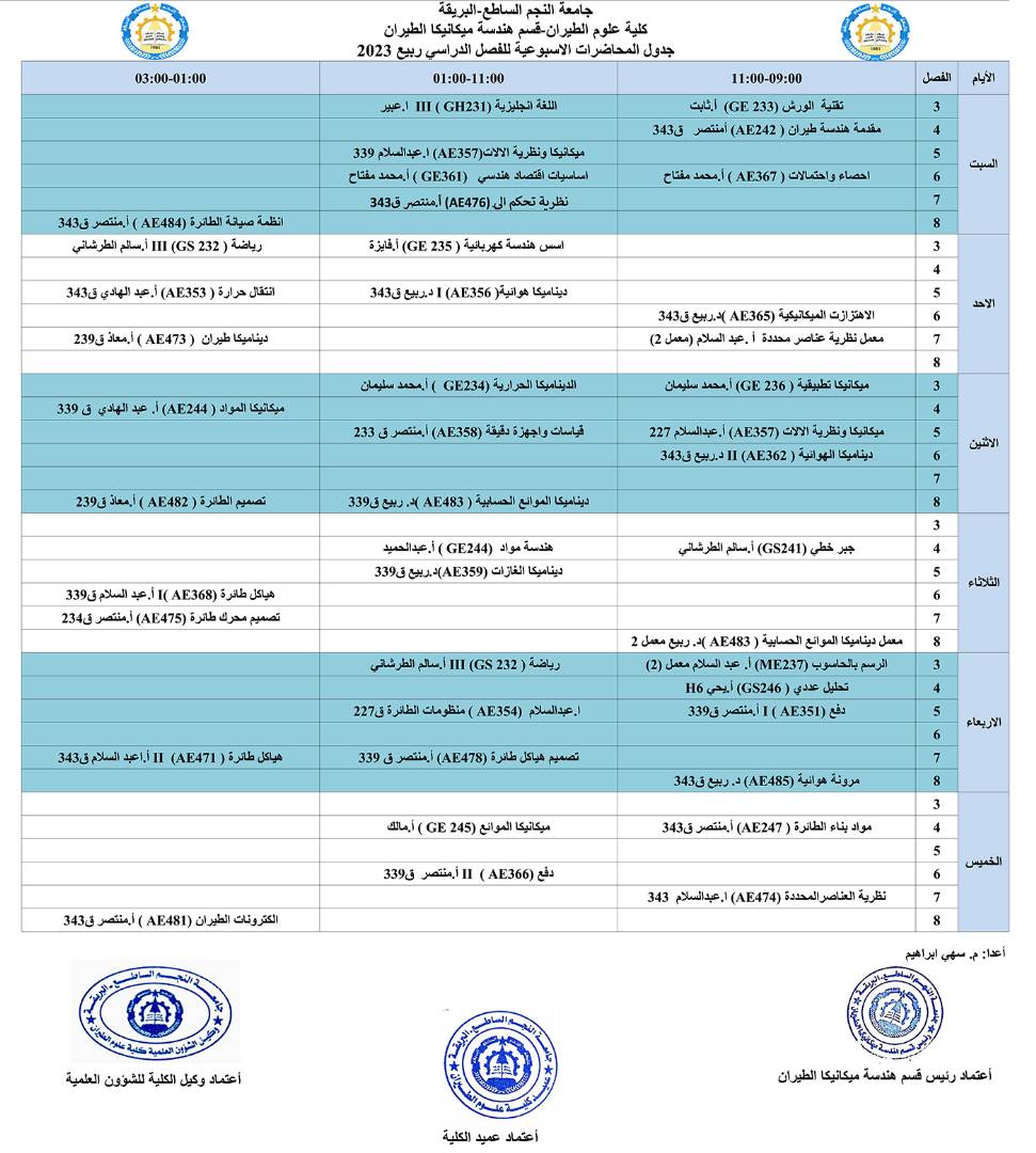 جداول المحاضرات للاقسام العلمية بكلية علوم الطيران للفصل الدراسي (ربيع 2023)مكتب الاعلام23 فبراير، 2023الاخبار والإعلانات, الصفحة الرئيسية المقالة السابقة جدول المحاضرات لكلية الإدارة للفصل الدراسي (ربيع 2023) المقالة التالية تسليم شهادات إتمام دورة اللغة الانجليزية بمركز اللغات لأفراد من رئاسة الأركان الجوية