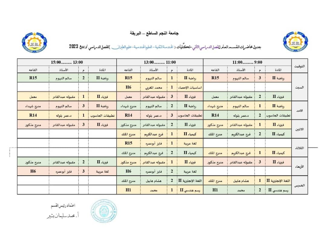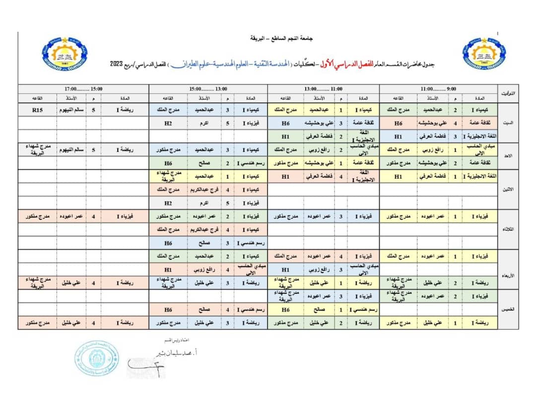 جدول محاضرات القسم العام بعد التعديل للفصل الدراسي (ربيع 2023) للكليات (الهندسة التقنية – العلوم الهندسية – علوم الطيران)مكتب الاعلام5 مارس، 2023الاخبار والإعلانات, الصفحة الرئيسية جدول محاضرات القسم العام بعد التعديل للفصل الدراسي (ربيع 2023) للكليات (الهندسة التقنية – العلوم الهندسية – علوم الطيران) المقالة السابقة جامعة النجم الساطع اليوم تسليم شهادات المشاركة في عدد من الدورات… المقالة التالية إجتماع مجلس الجامعة لشهر مارس