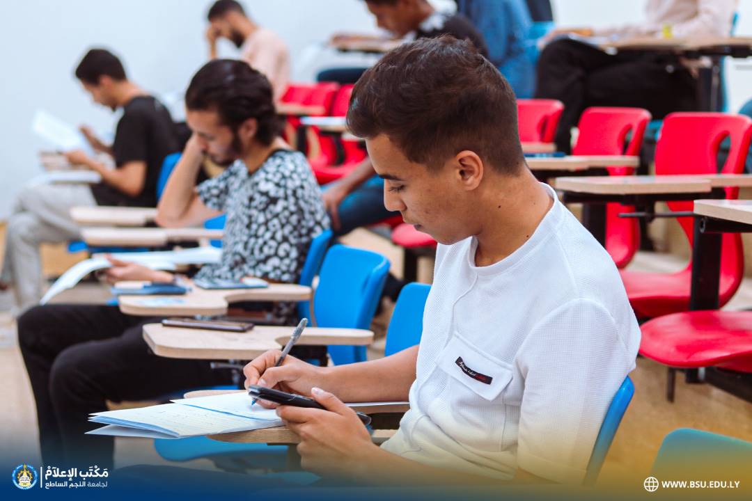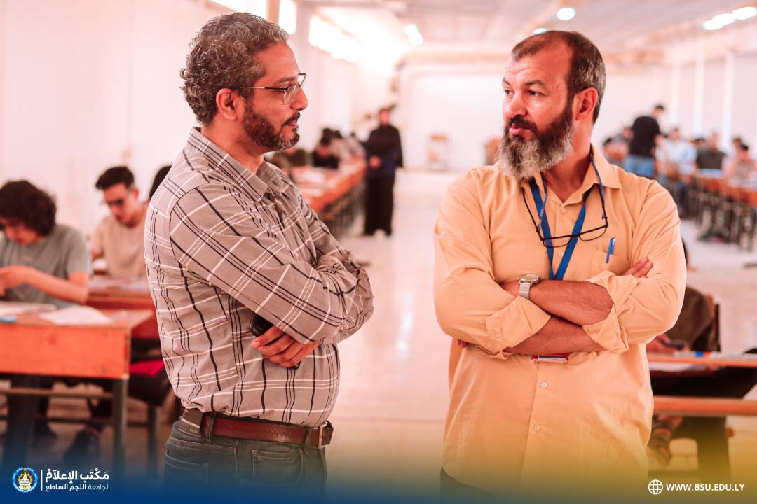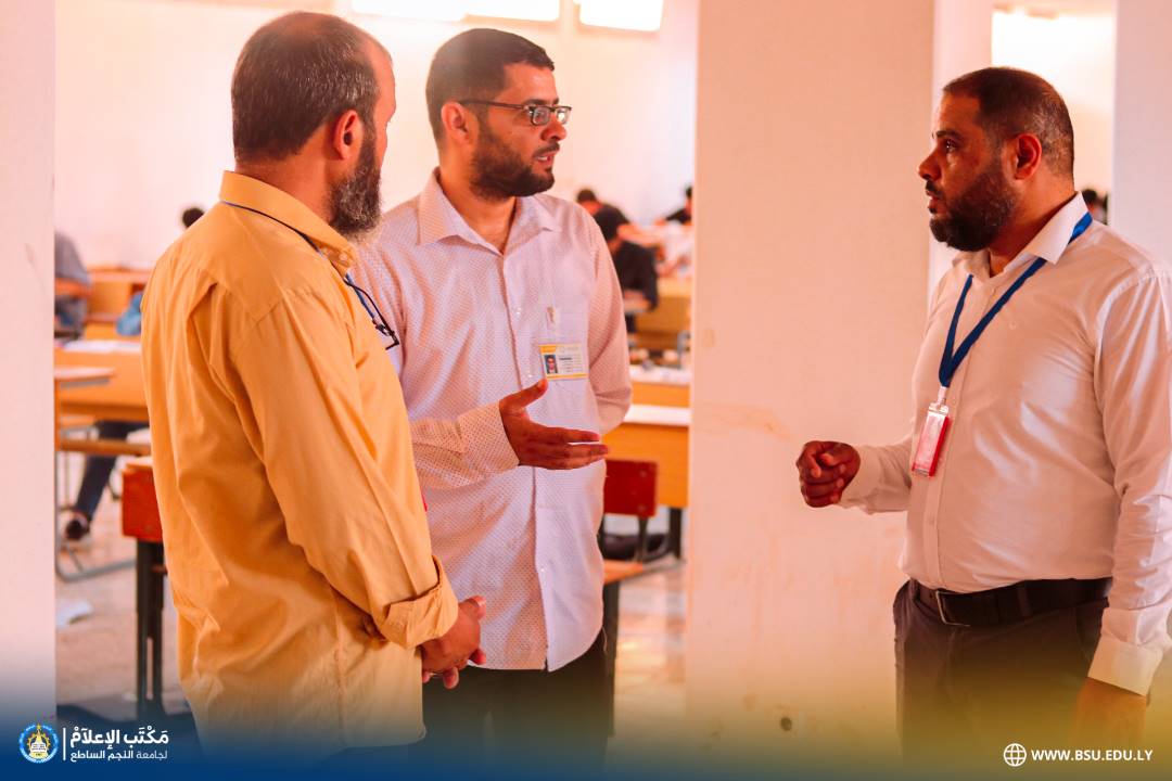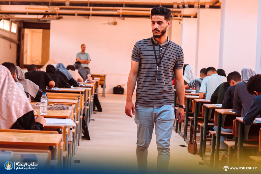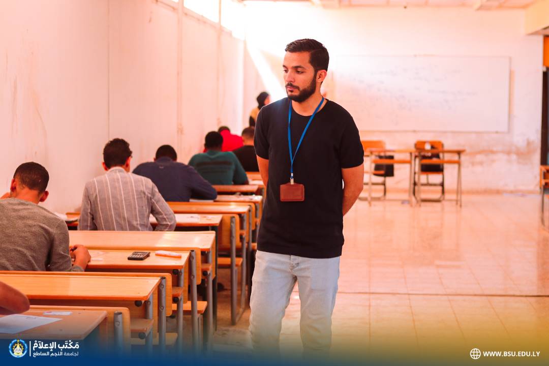 لقطات من مُتابعة مكتب الإعلام لعملية إجراء الامتحانات النهائية للفصل الدراسي (ربيع 2023) في العديد من القاعات والمدرجات الخاصة بالجامعة، وبإشراف لجنة الامتحانات النهائية المتكونه من موظفي الجامعة وبرئاسة الاستاذ (جمعة العربي)، وسط تنظيم كامل من قبل افراد الحرس الجامعي.