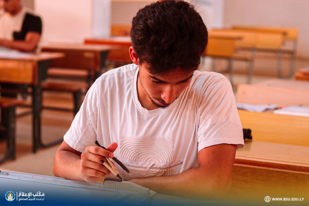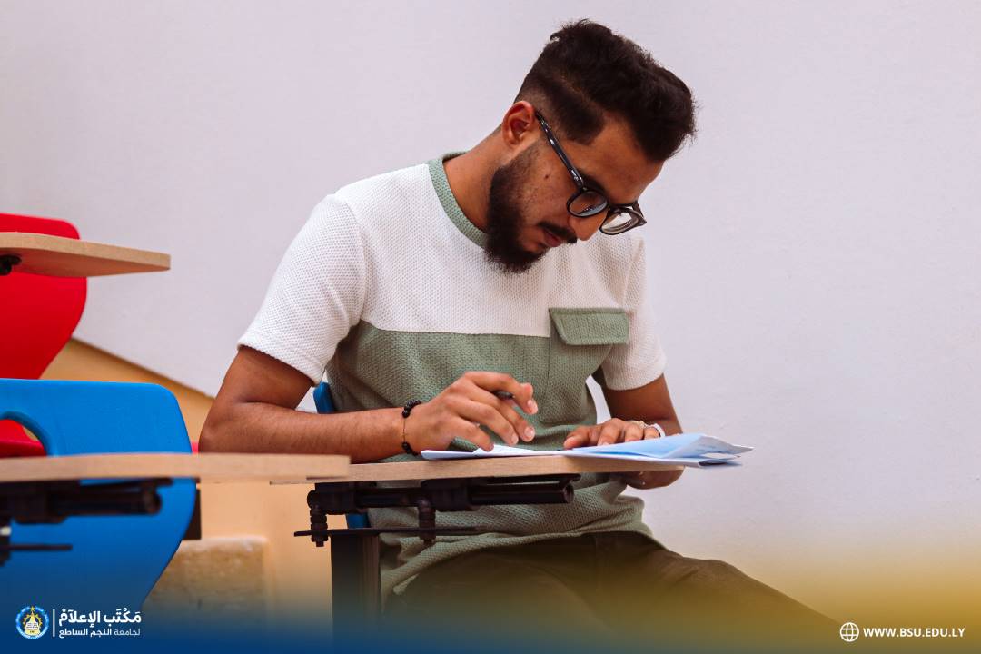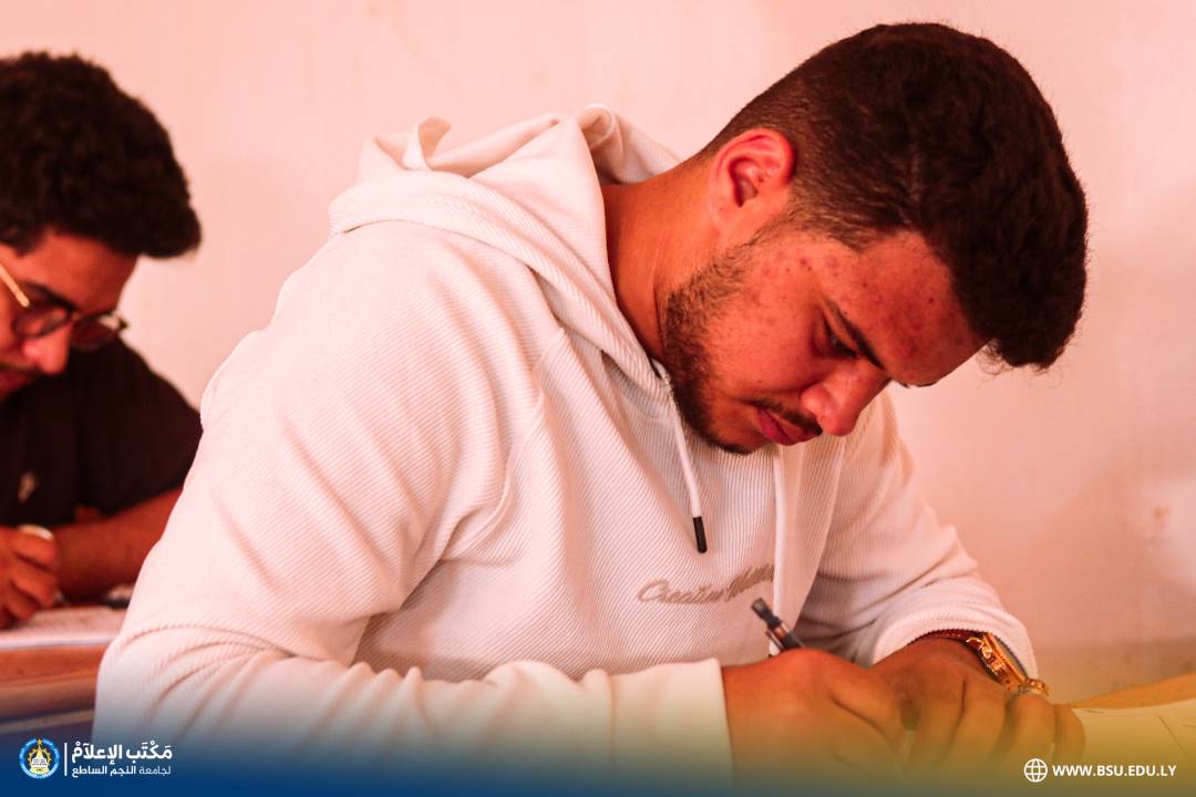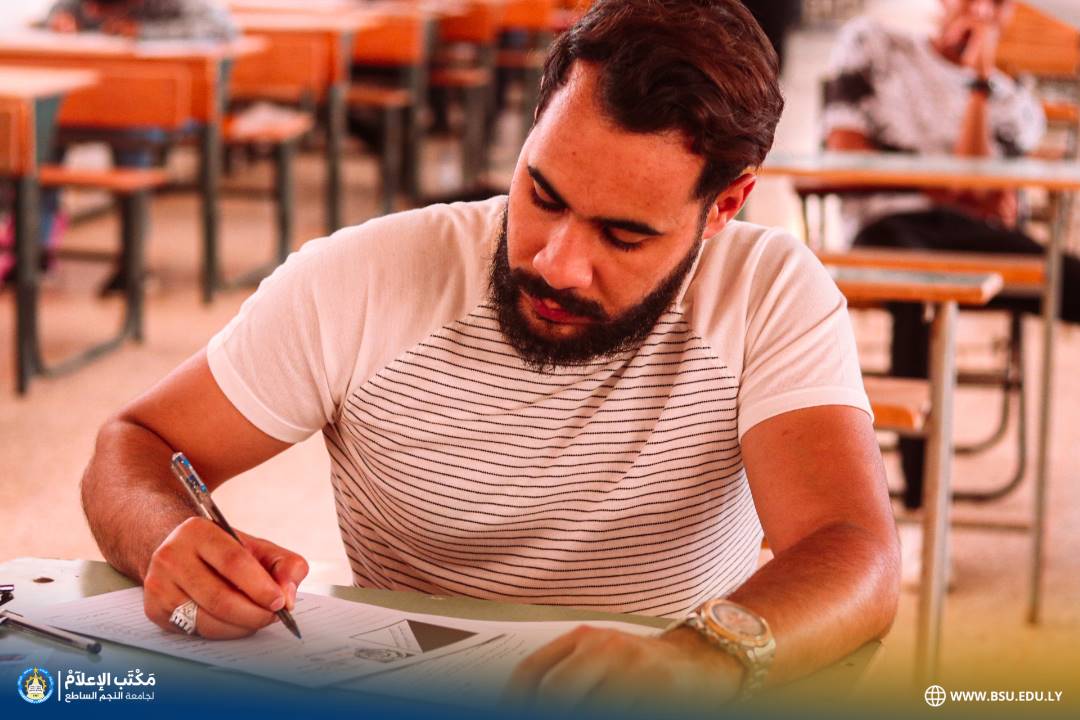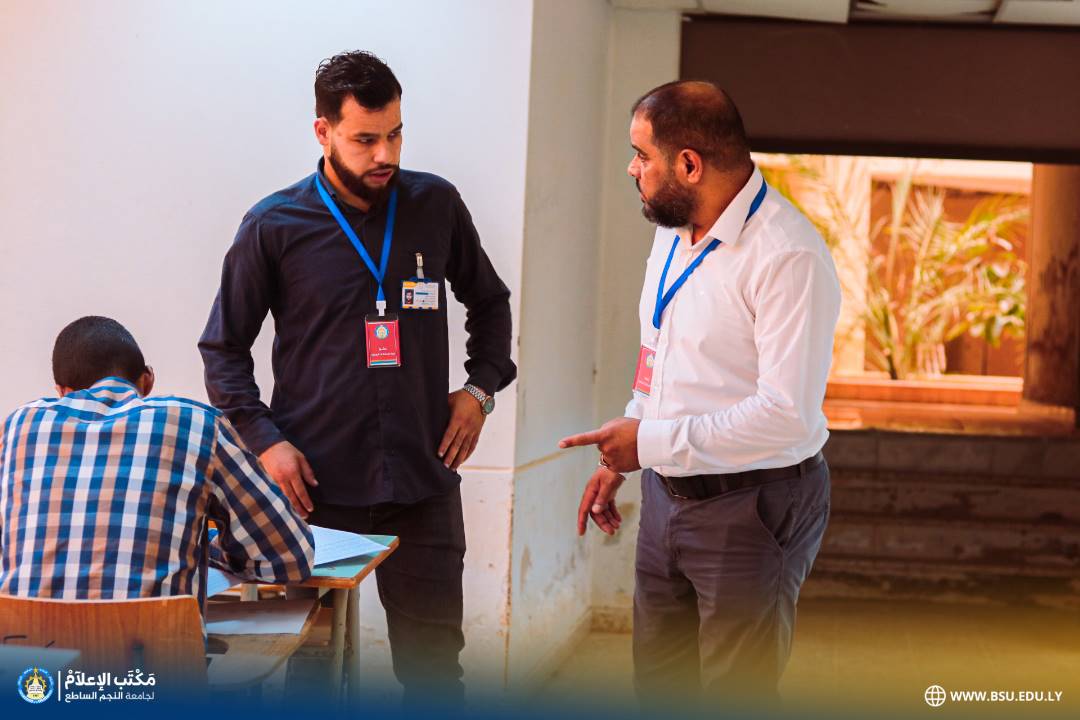 لقطات من مُتابعة مكتب الإعلام لعملية إجراء الامتحانات النهائية للفصل الدراسي (ربيع 2023) في العديد من القاعات والمدرجات الخاصة بالجامعة، وبإشراف لجنة الامتحانات النهائية المتكونه من موظفي الجامعة وبرئاسة الاستاذ (جمعة العربي)، وسط تنظيم كامل من قبل افراد الحرس الجامعي.