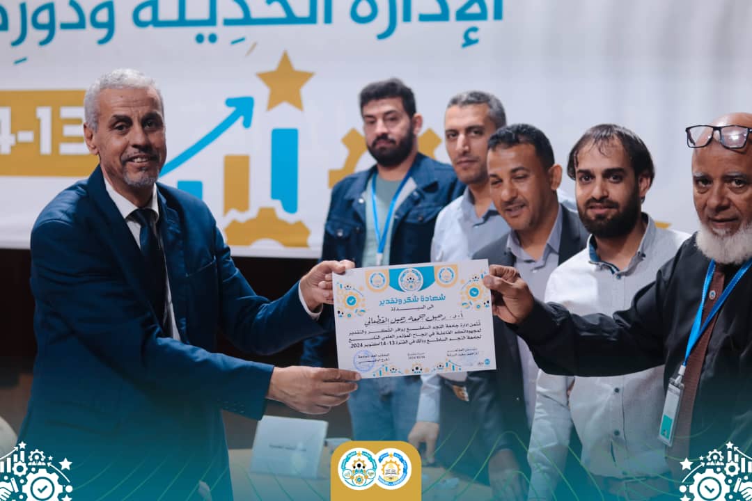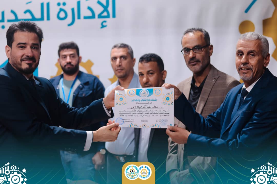 تم اليوم الإثنين الموافق 14 أكتوبر 2024 ختام جلسات المؤتمر العلمي التاسع لجامعة النجم الساطع والذي تحت عنوان (الإدارة الحديثة ودورها في تحسين الأداء المؤسسي) حيث شارك العديد من الهواة والمهتمين بمجال الإدارة في هذا المؤتمر من شرق ليبيا وغربها، وكان لنا شرف الاستضافة وتقديم كافة الخدمات والتسهيلات لكافة المشاركين، وبفضل الله وتوفيقه وبدعم إدارة الجامعة وبمجهودات اللجنة التنظيمية للمؤتمر تم اليوم إسدال الستار عن المؤتمر التاسع وبحفل ختامي بسيط وتكريم كل المشاركين بالمؤتمر ومنحهم شهادة مشاركة من قبل اللجنة العلمية بالمؤتمر، كما تم تقديم شهادات شكر وتقدير مقدمة من إدارة جامعة النجم الساطع للسادة أعضاء اللجنة العلمية للمؤتمر والسادة أعضاء اللجنة التنظيمية وأعضاء اللجنة الإعلامية وكافة الجهات المساهمة في هذا المؤتمر بالإضافة الى تكريم السيد عميد بلدية البريقة وضواحيها والسيد مدير مديرية امن الهلال النفطي ومجلس إدارة شركة سرت.