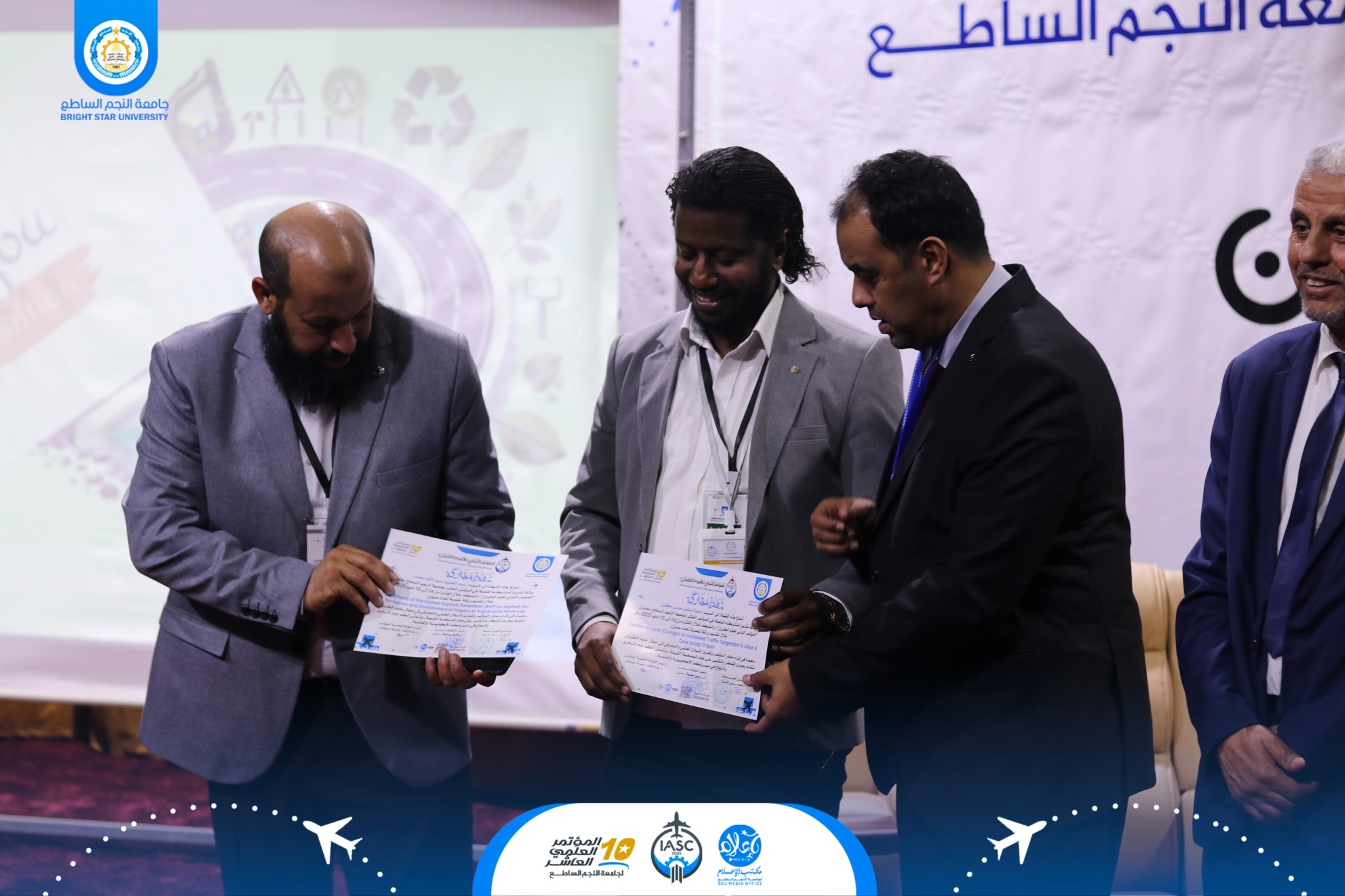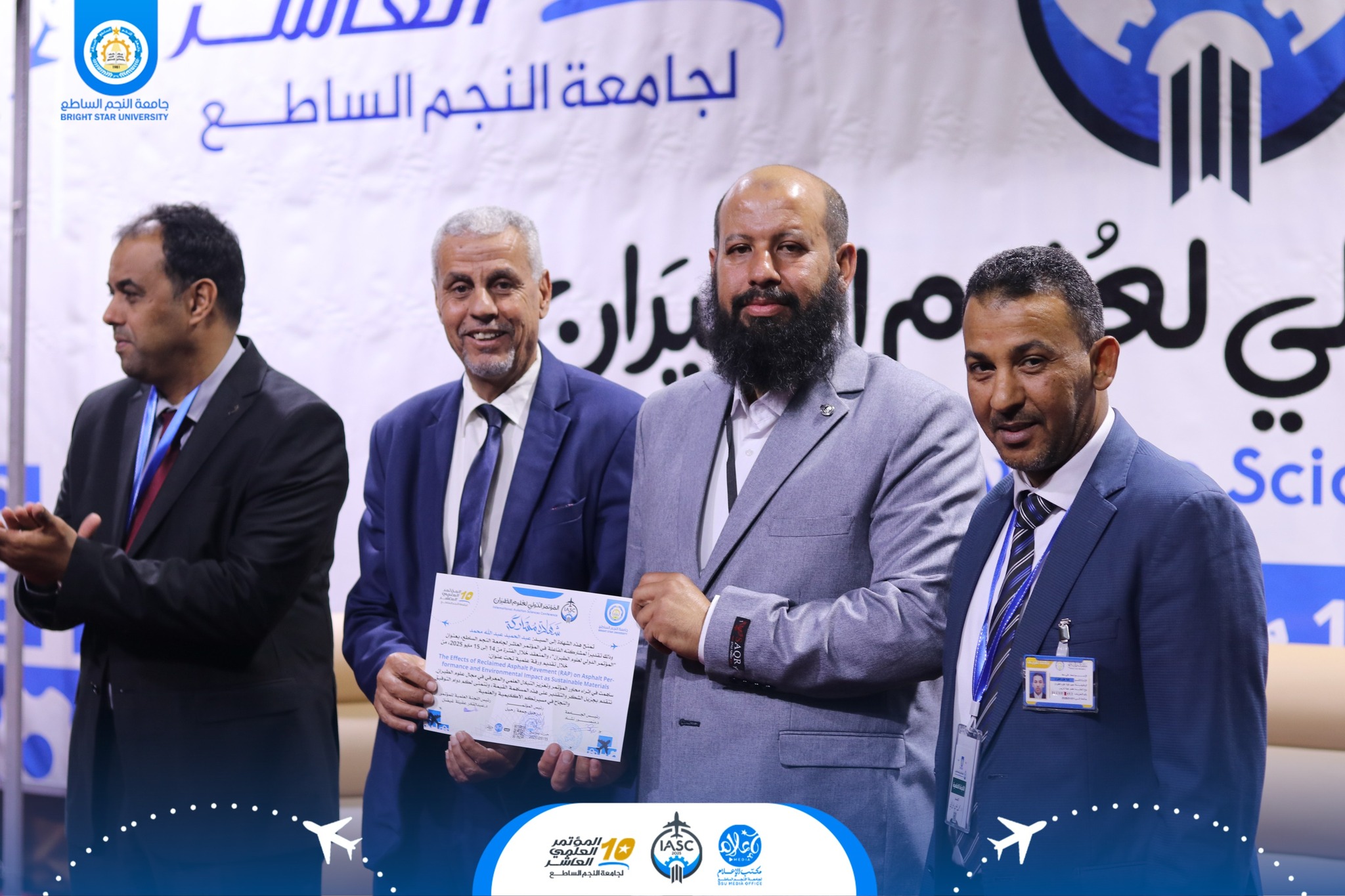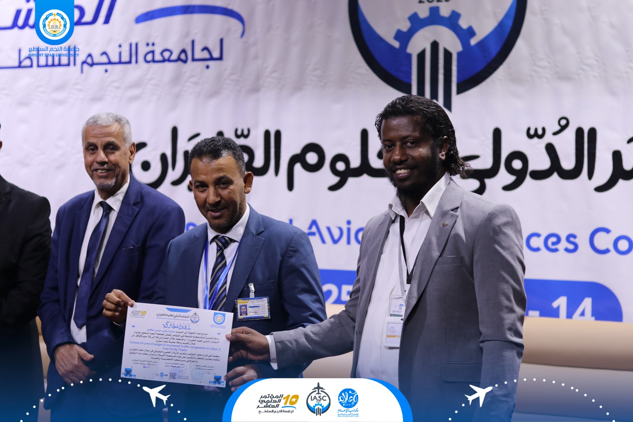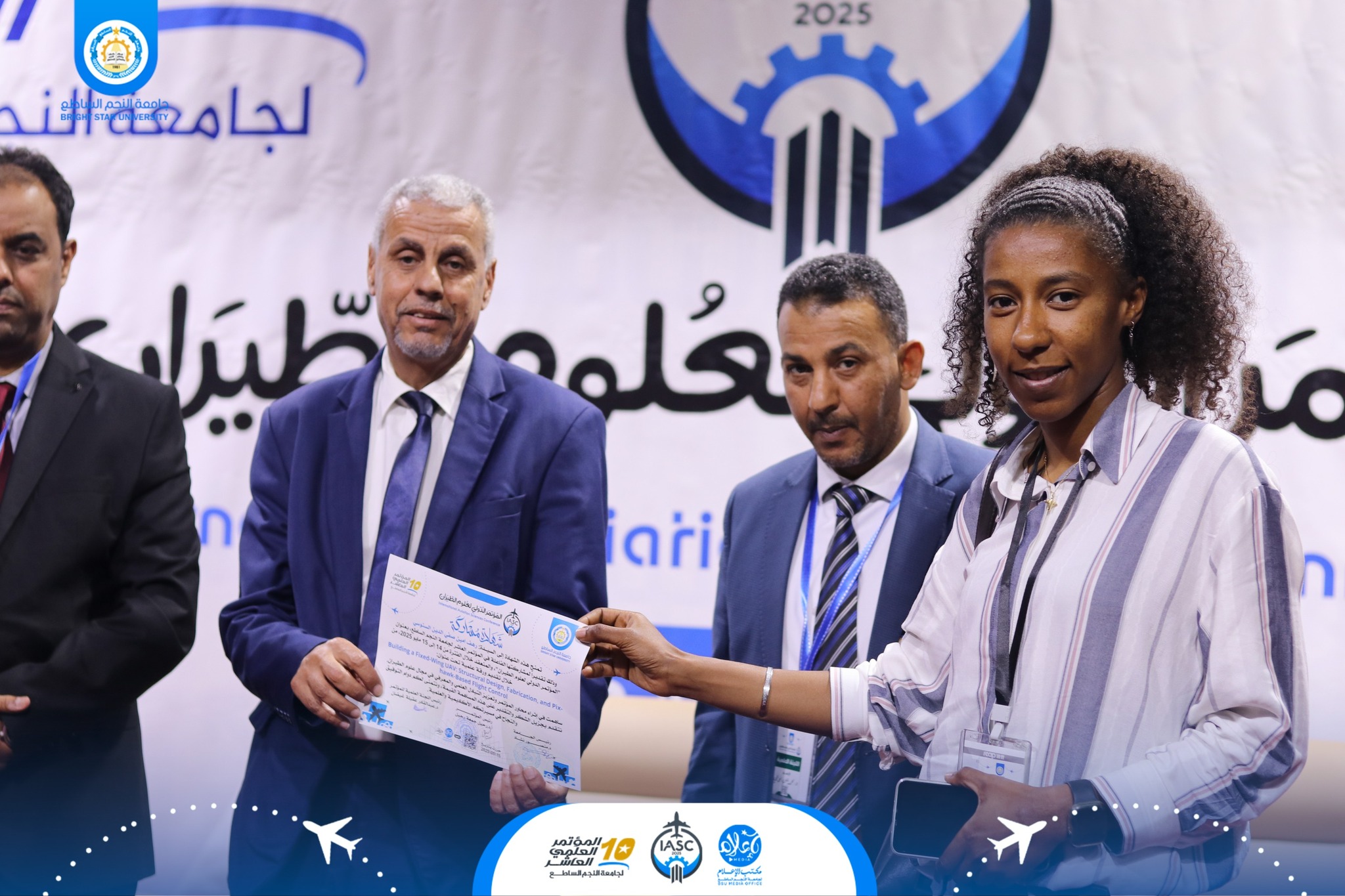 في ختام الجلسة الأولى من فعاليات اليوم الأول للمؤتمر الدولي لعلوم الطيران، والذي عُقد اليوم الأربعاء الموافق 14 مايو 2025، قامت اللجنة العلمية للمؤتمر والمتمثلة في: