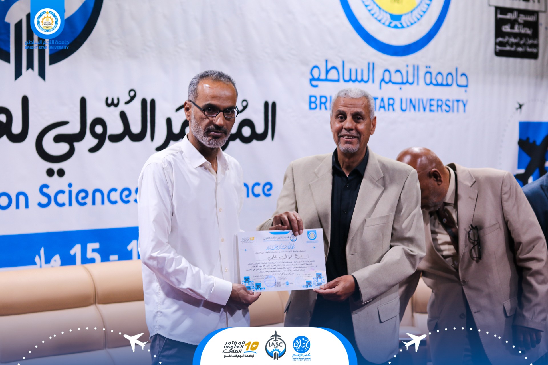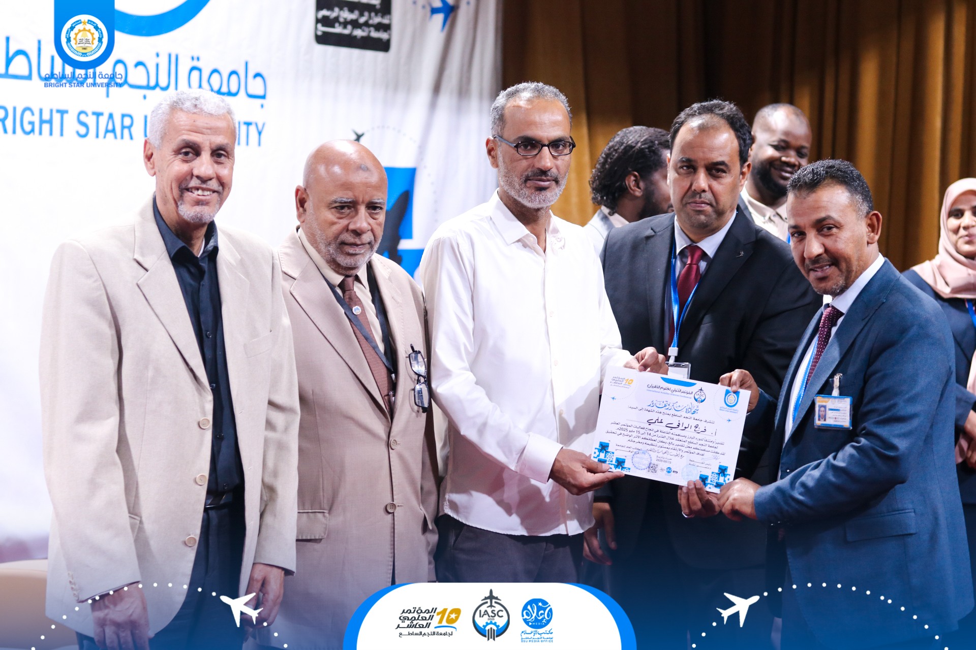 ✨ هذا التكريم جاء تأكيدًا على ثقافة التقدير والتحفيز التي تتبناها جامعة النجم الساطع، ودعمًا لكل الجهود المبذولة لإنجاح الفعاليات العلمية التي تسهم في رفع مستوى البحث العلمي في ليبيا وخارجها.