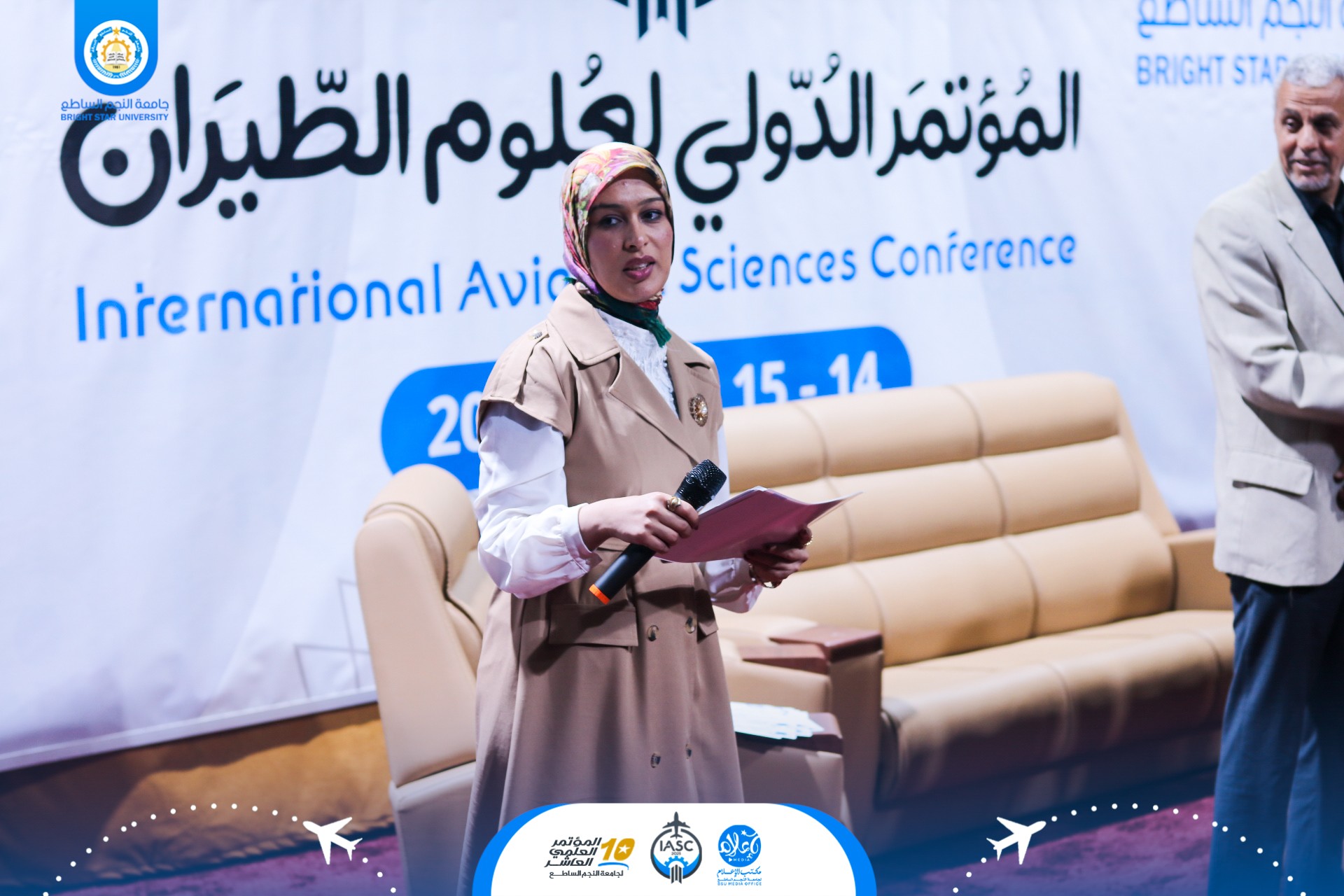 في ختام فعاليات اليوم الثاني من المؤتمر الدولي لعلوم الطيران الذي تنظمه جامعة النجم الساطع في نسخته العاشرة، جرى اليوم الخميس 15 مايو 2025 حفل تكريم رسمي تقديراً لجهود المشاركين واللجان المنظمة.