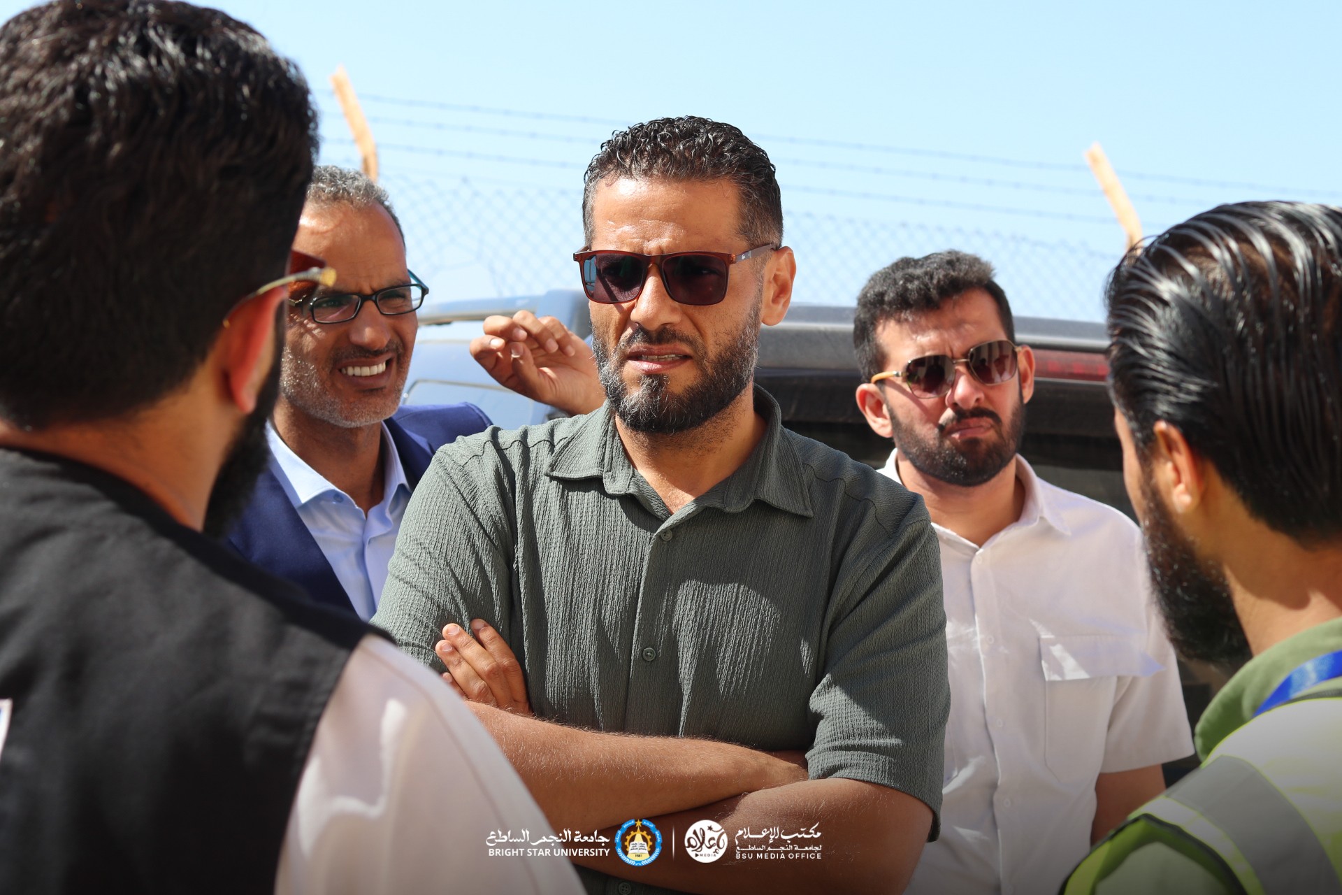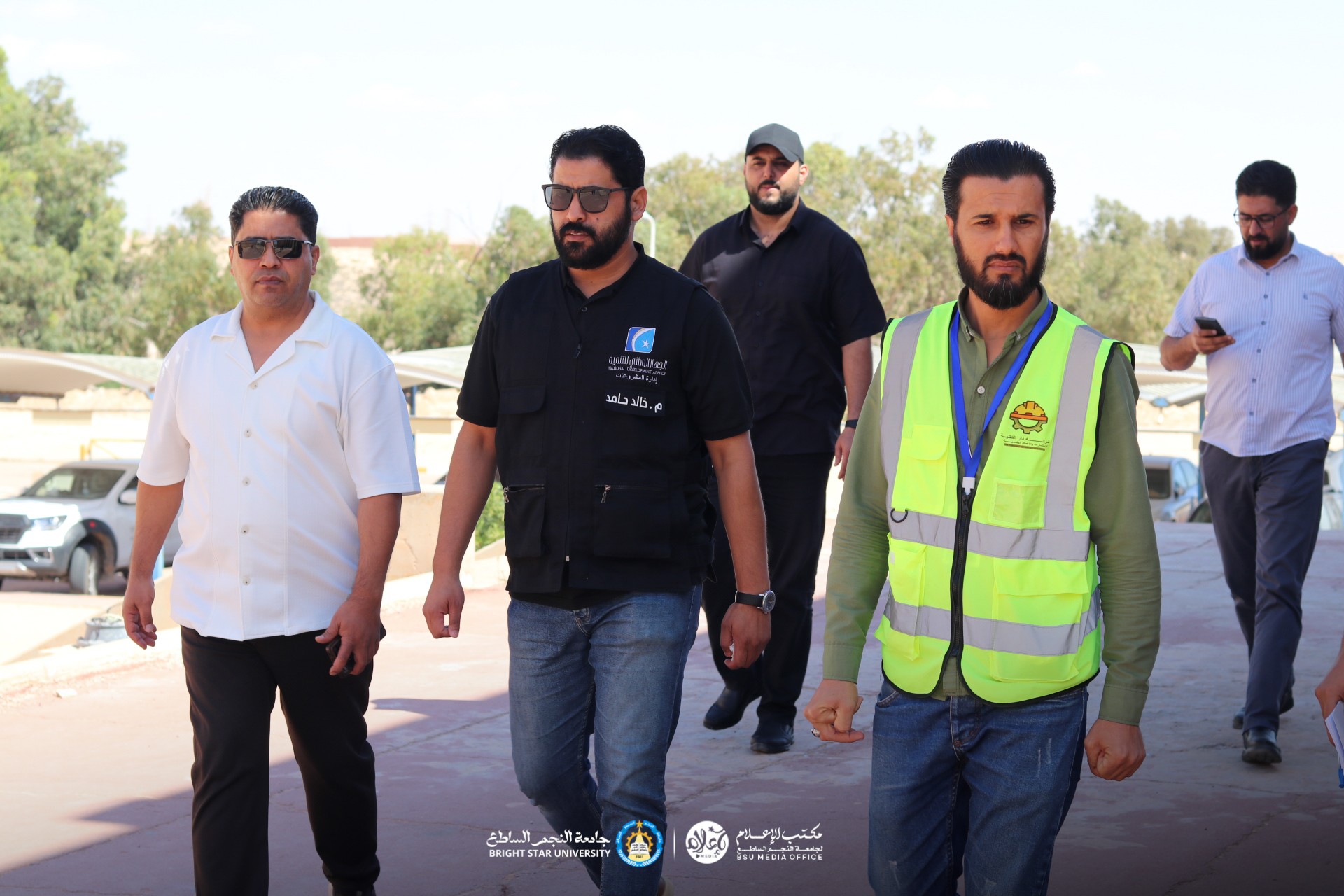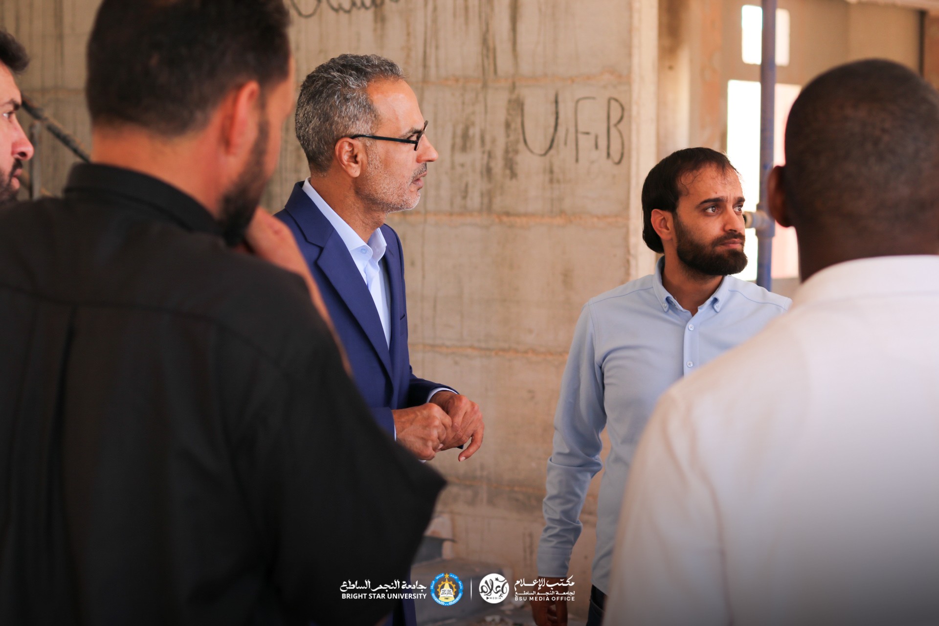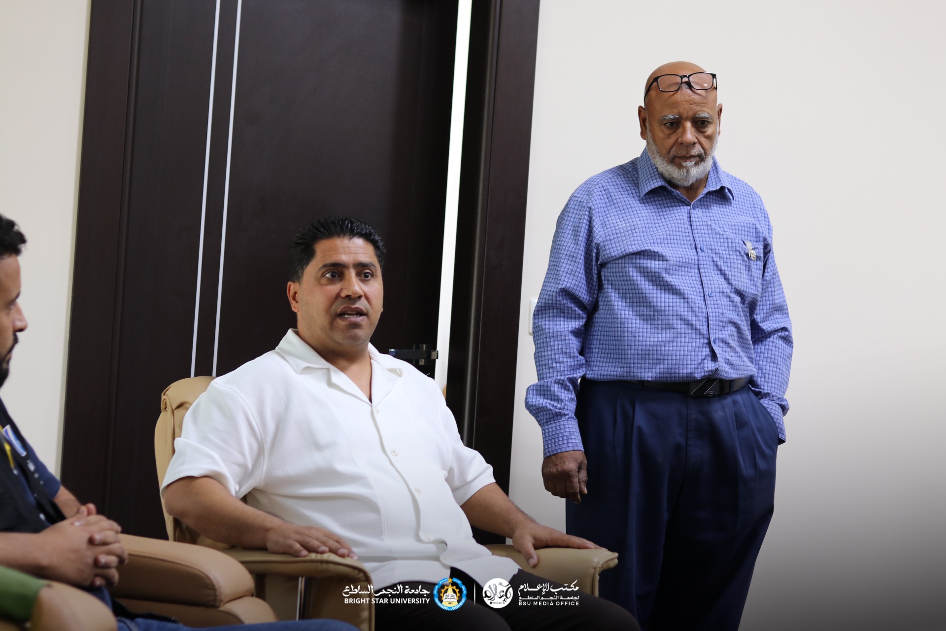 في إطار توجيهات القيادة العامة للقوات المسلحة العربية الليبية الرامية إلى دعم وتطوير مؤسسات التعليم العالي والاهتمام بالبنية التحتية للمرافق التعليمية، استقبل السيد الدكتور منصور خليفة رئيس جامعة النجم الساطع – البريقة صباح اليوم فريقًا من مهندسي إدارة المشروعات التابعين للجهاز الوطني للتنمية، وذلك لبحث الترتيبات الفنية اللازمة للبدء في مشروعات الإنشاء والصيانة الشاملة داخل الجامعة.
