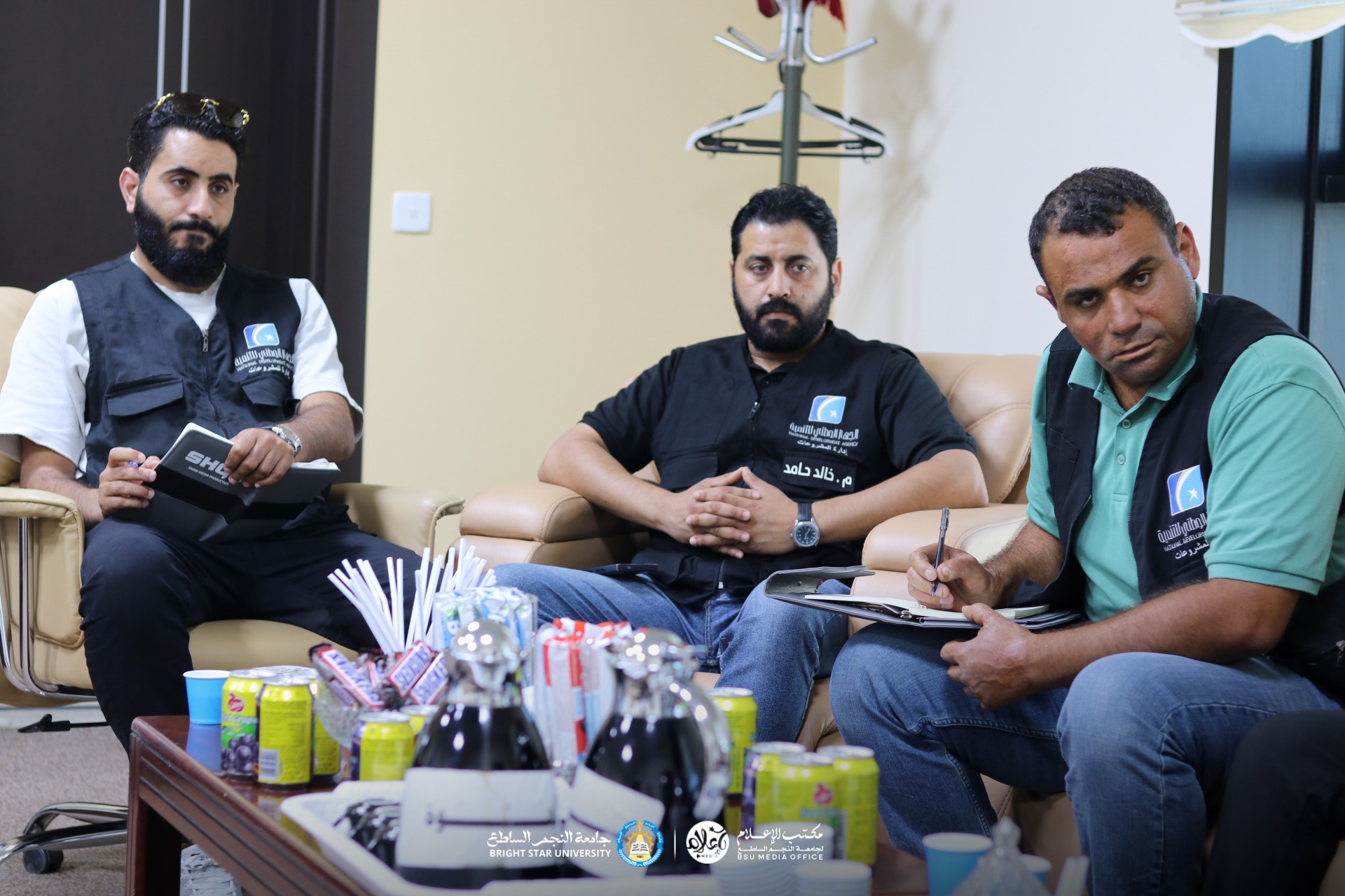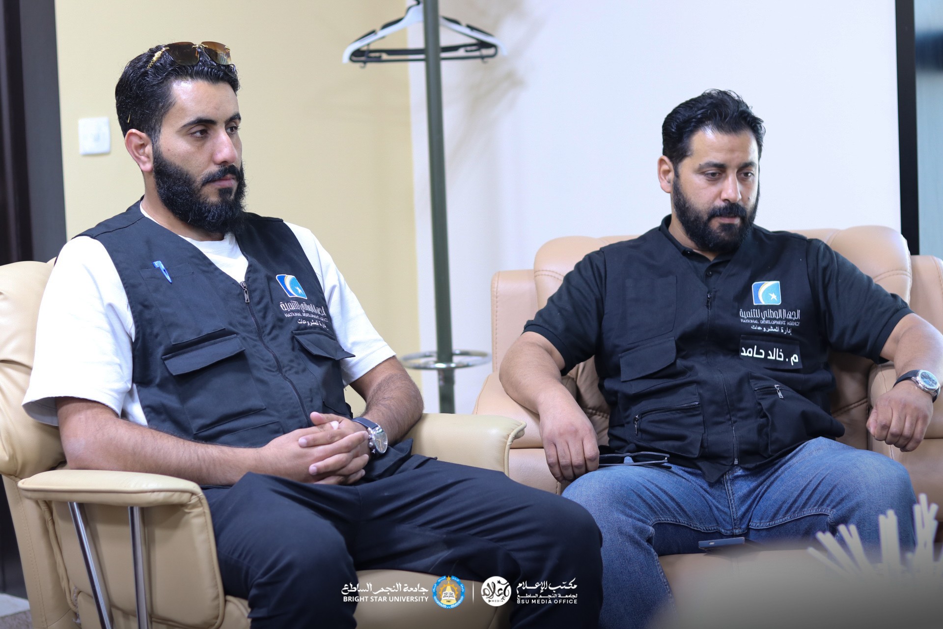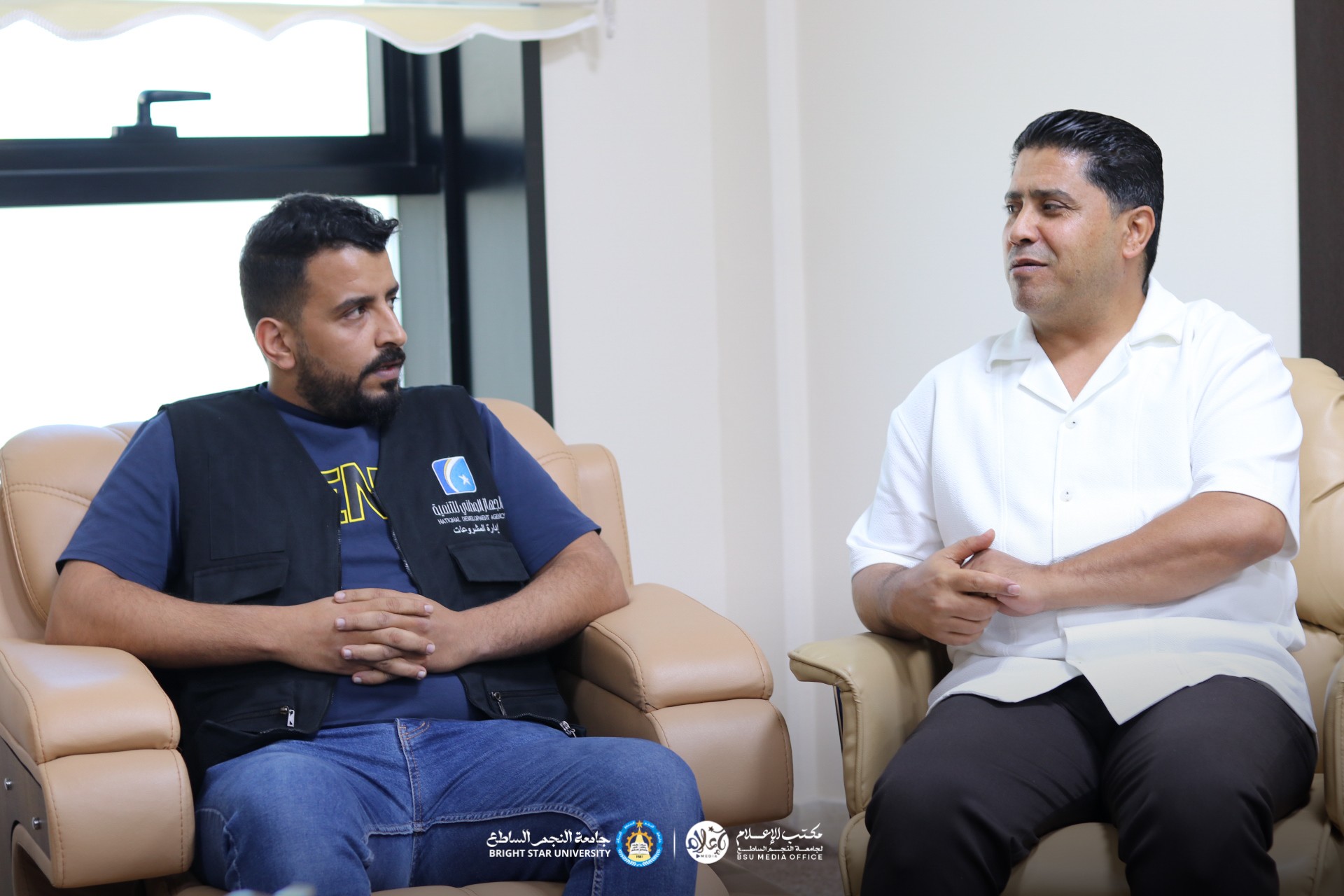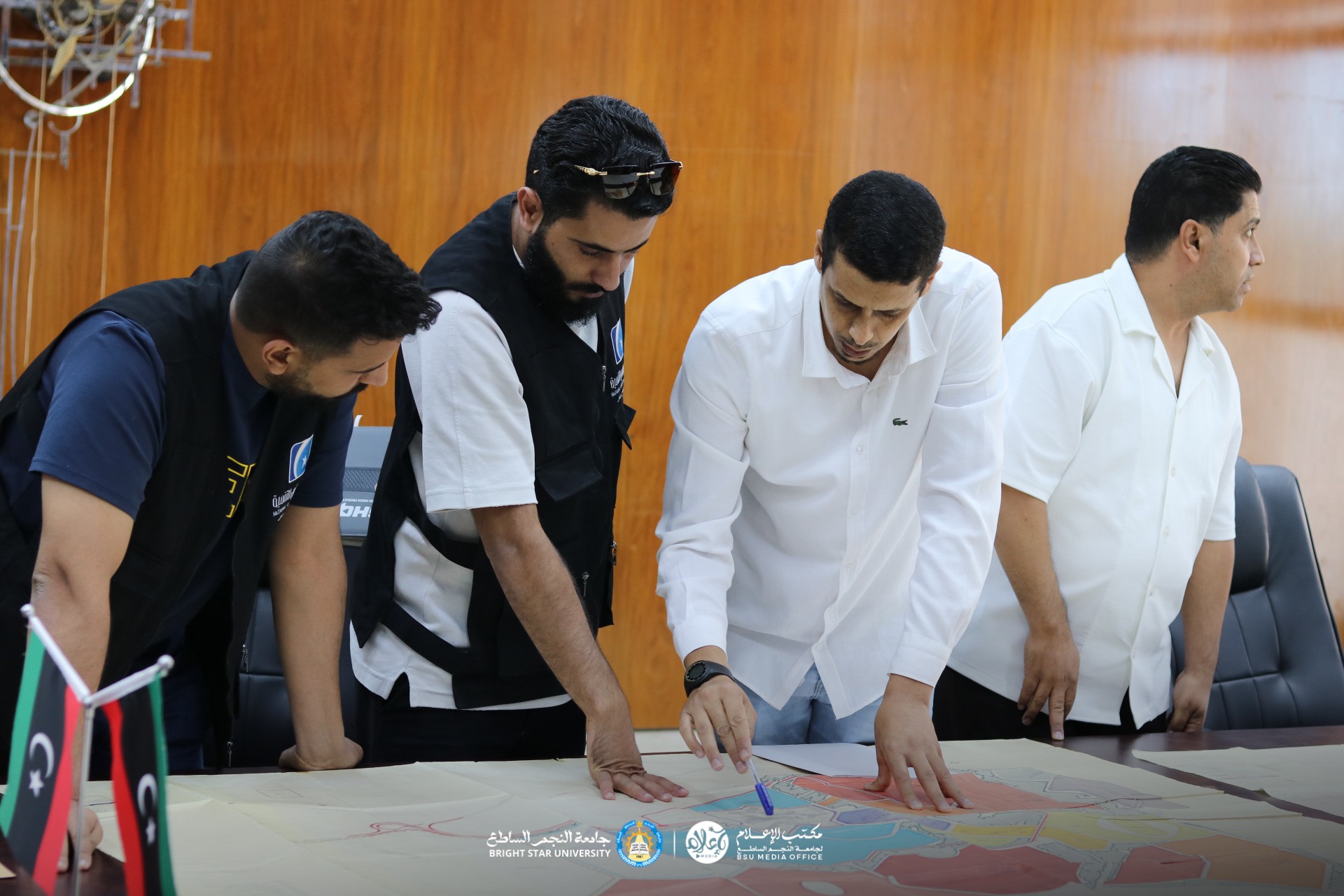 في إطار توجيهات القيادة العامة للقوات المسلحة العربية الليبية الرامية إلى دعم وتطوير مؤسسات التعليم العالي والاهتمام بالبنية التحتية للمرافق التعليمية، استقبل السيد الدكتور منصور خليفة رئيس جامعة النجم الساطع – البريقة صباح اليوم فريقًا من مهندسي إدارة المشروعات التابعين للجهاز الوطني للتنمية، وذلك لبحث الترتيبات الفنية اللازمة للبدء في مشروعات الإنشاء والصيانة الشاملة داخل الجامعة.