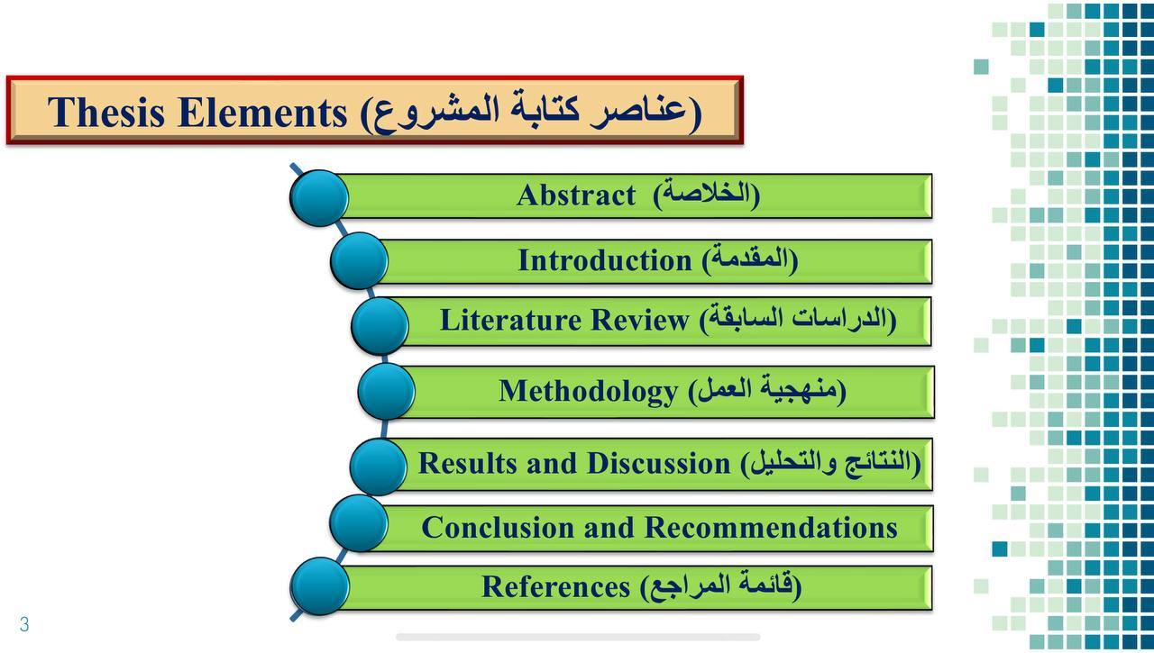 وتناولت الورشة جملة من المحاور الجوهرية من بينها: عناصر كتابة مشروع التخرج، وضوابط النسق والتنسيق وفق دليل الكلية، وآلية إعداد العرض المرئي للمشاريع، حيث تم خلال الجلسة استعراض الخطوات المنهجية لكتابة البحث العلمي بدءًا من إعداد الملخص والمقدمة مرورًا بـ الدراسات السابقة ومنهجية البحث والتحليل والنتائج، وصولًا إلى الخلاصة والتوصيات وقائمة المراجع.