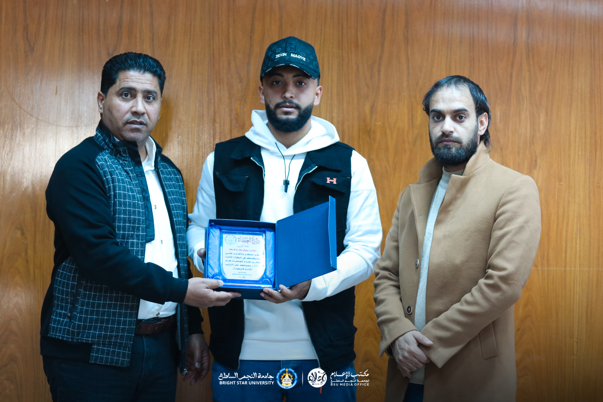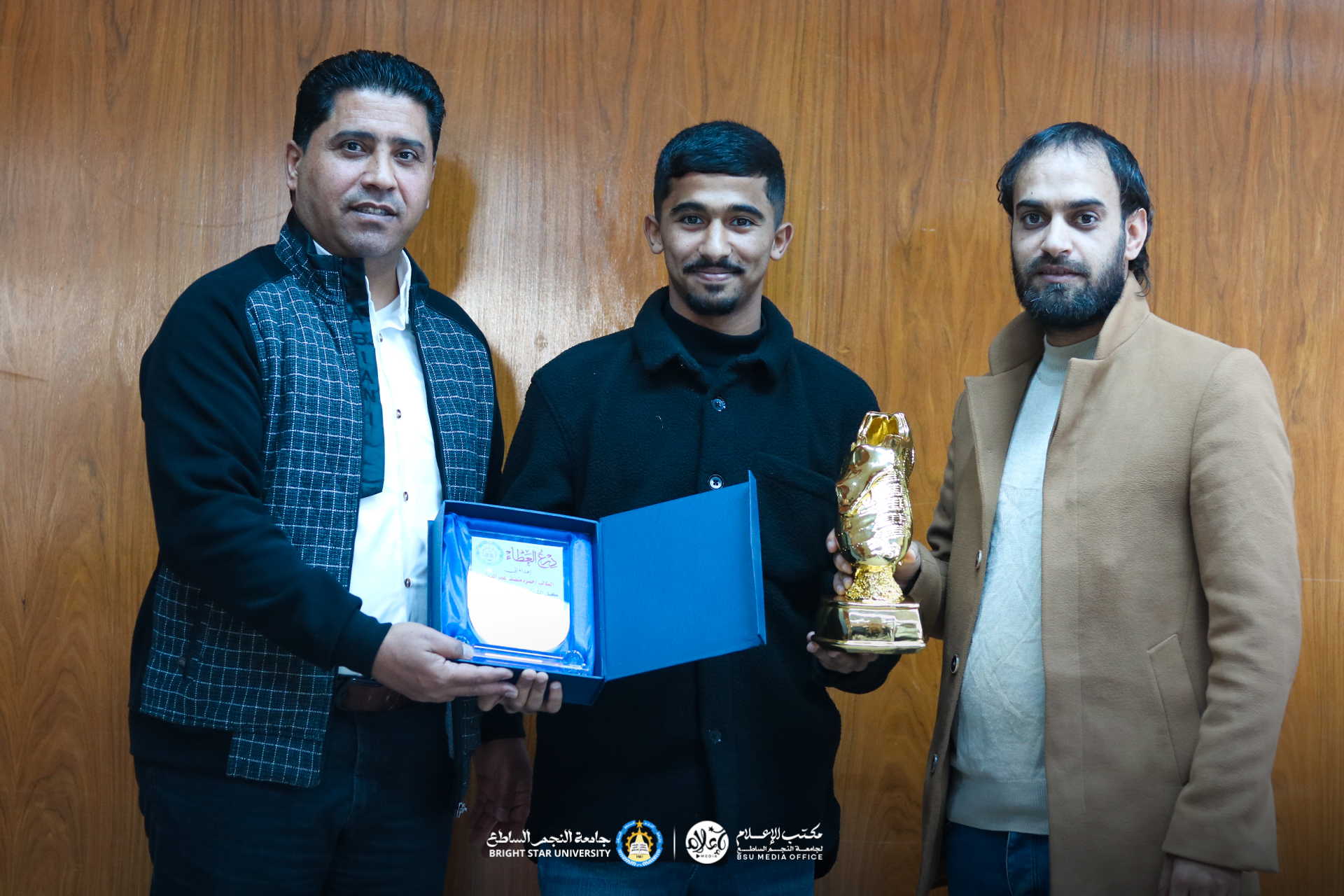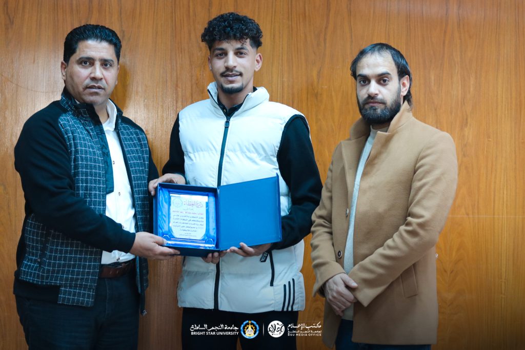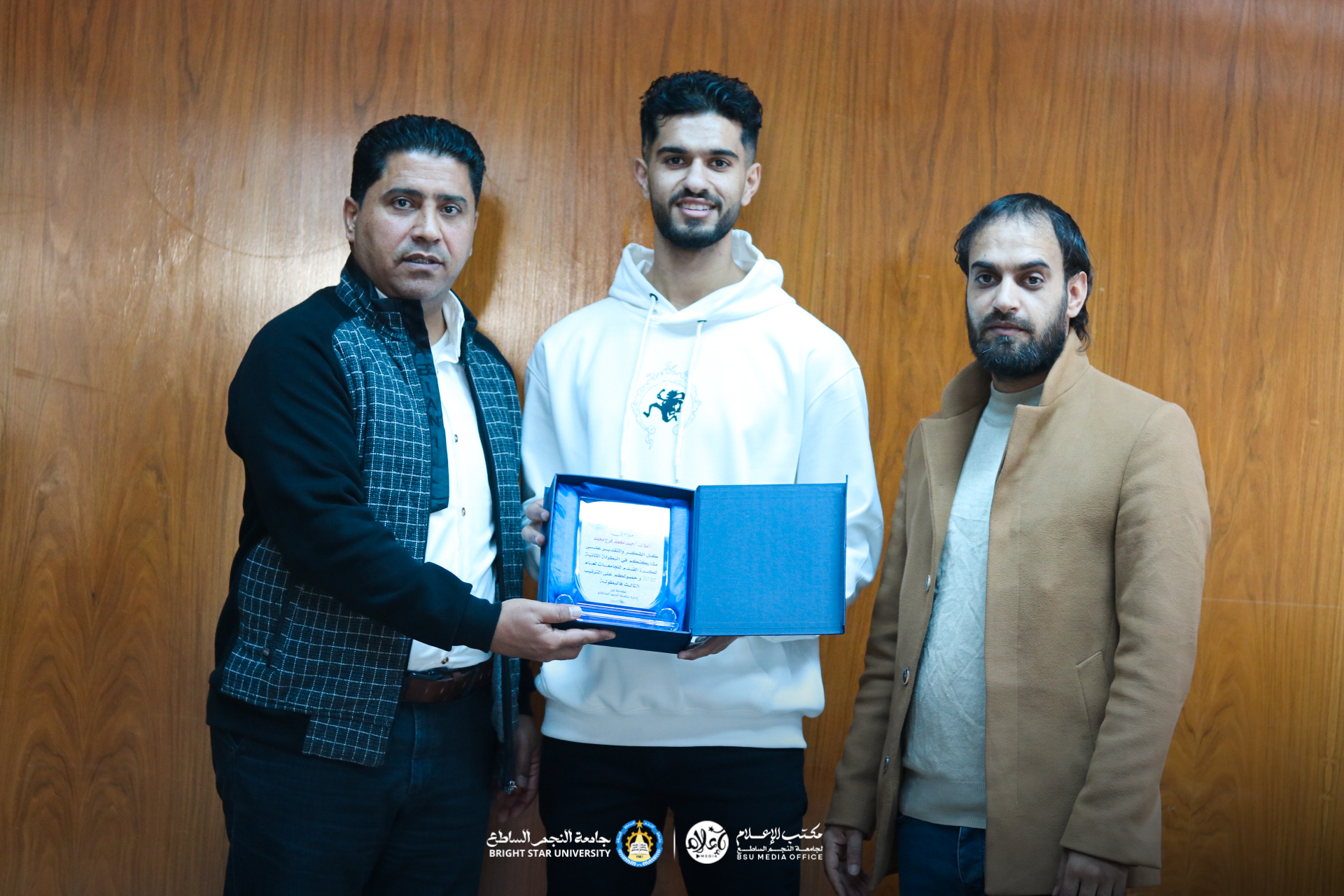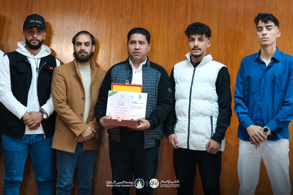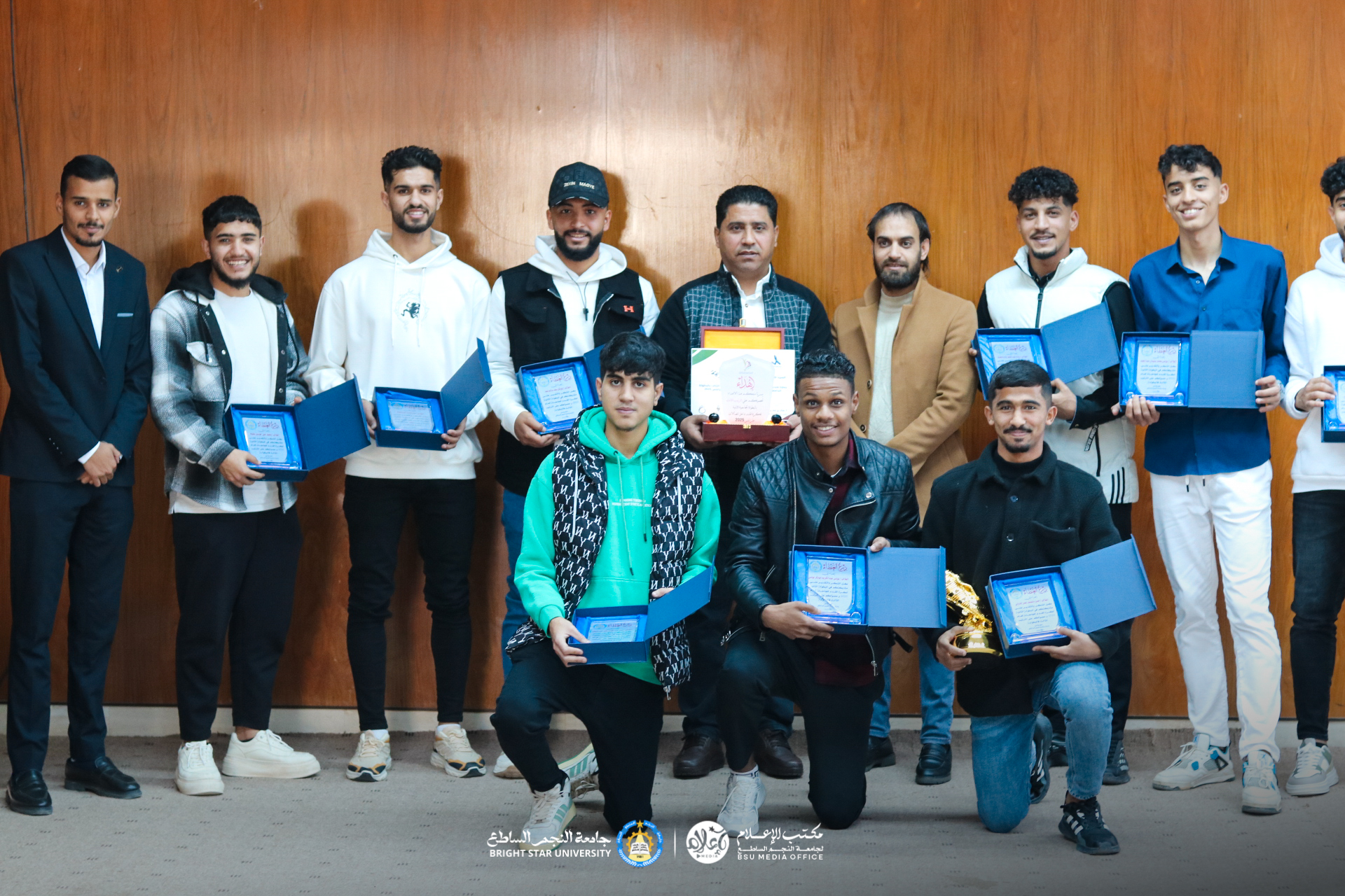 قامت جامعة النجم الساطع بتقديم دروع العطاء تكريمًا لمنتخب الجامعة لكرة القدم داخل الصالات، تقديرًا لما قدّمه من أداء مشرّف وجهود مميّزة، تُوِّجت بإحراز المركز الثالث في البطولة الجامعية الثانية لكرة القدم داخل الصالات، في إنجاز يعكس روح الالتزام والتميّز لدى لاعبي الفريق.