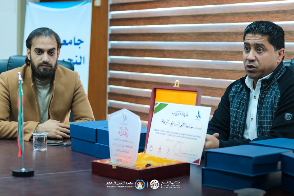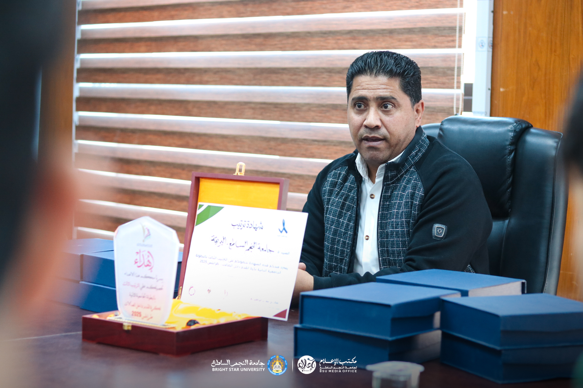 وقد تشرّف حفل التكريم بحضور رئيس الجامعة الدكتور منصور نشاد، الذي أكّد في كلمته دعم الجامعة المتواصل للأنشطة الرياضية، وحرصها الدائم على رعاية المواهب الطلابية وصقلها، بما يسهم في الارتقاء بالرياضة الجامعية وتمثيل الجامعة بصورة مشرّفة في مختلف المحافل.