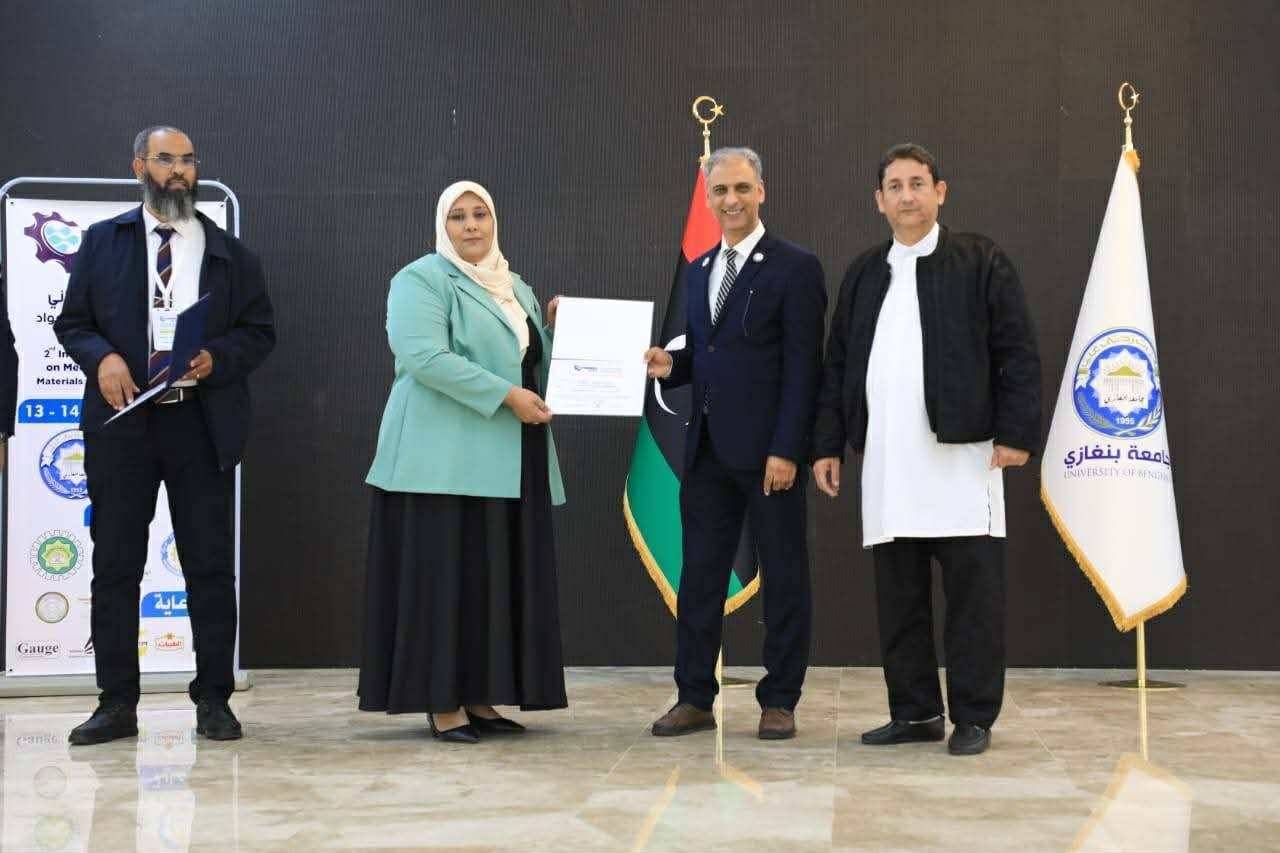 كما تتقدم الجامعة بخالص الشكر والتقدير للجنة المنظمة للمؤتمر، متمنيةً للأستاذة سالمة رجب والدكتور منعم المنفي دوام التوفيق ومزيدًا من النجاحات في مسيرتهما العلمية والأكاديمية.