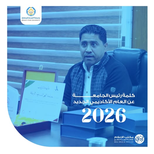 يسرّني، مع بداية العام الأكاديمي الجديد 2026، أن أتقدّم إليكم جميعًا بأصدق عبارات التهاني وأطيب الأمنيات، سائلًا الله العليّ القدير أن يكون عامًا حافلًا بالنجاح، زاخرًا بالعطاء، ومكللًا بالتوفيق لنا جميعًا.